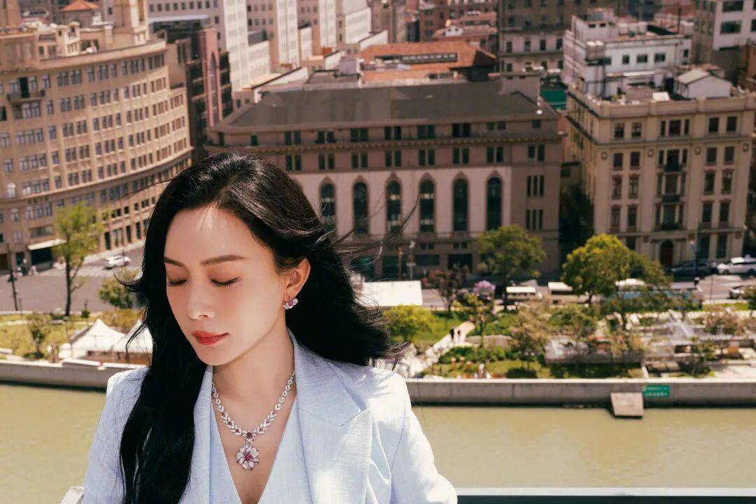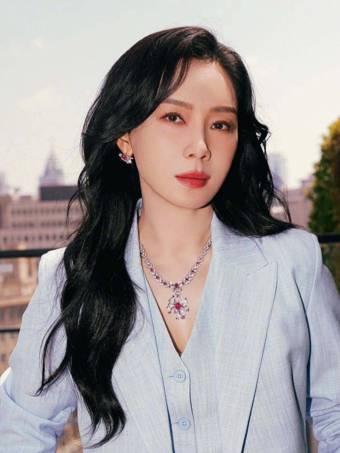 更绝的是她的搭配小心机:内搭选了低领的款式,露出一点锁骨线条,打破了西装的沉闷感;再配上一套粉钻珠宝,暖调的宝石中和了西装的冷感,瞬间把“职场战袍”穿出了千金贵气感。