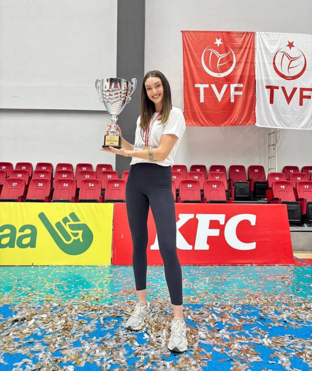她坚持每天至少1小时的有氧运动和力量训练,通过瑜伽、跑步、游泳等方式保持紧致身材 。