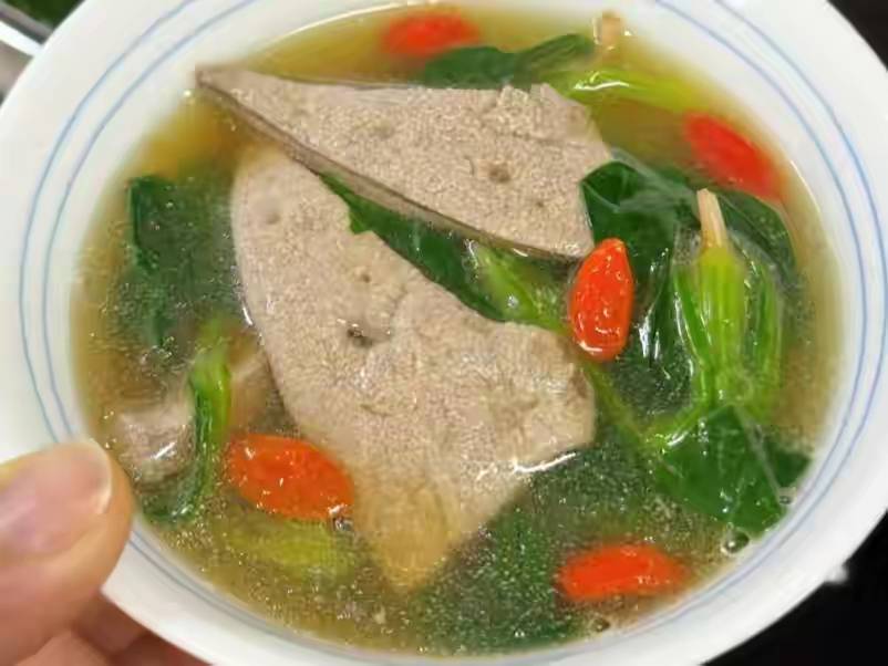猪肝嫩滑,菠菜清爽,汤喝起来很鲜。一周喝一次就行,不要太多。