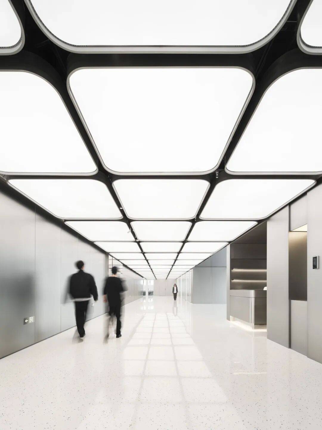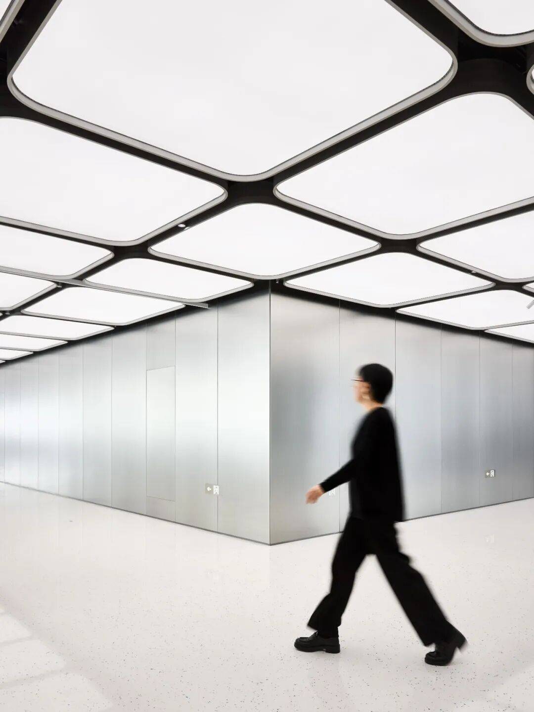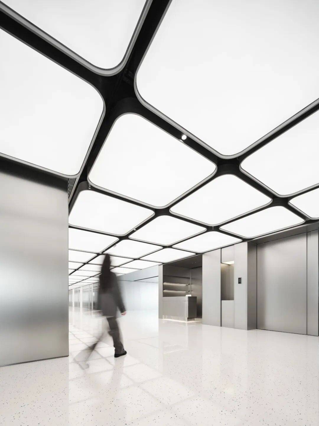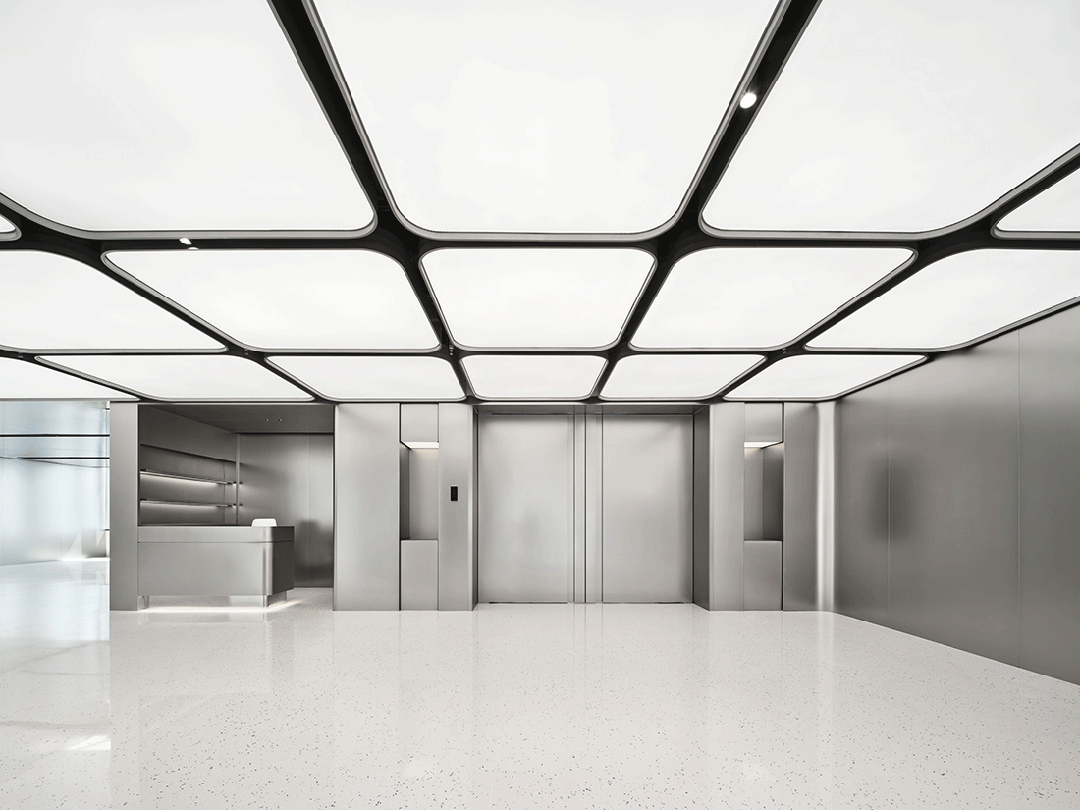 镜面不锈钢天花强化虚实交织的视觉体验,形成企业第一印象。