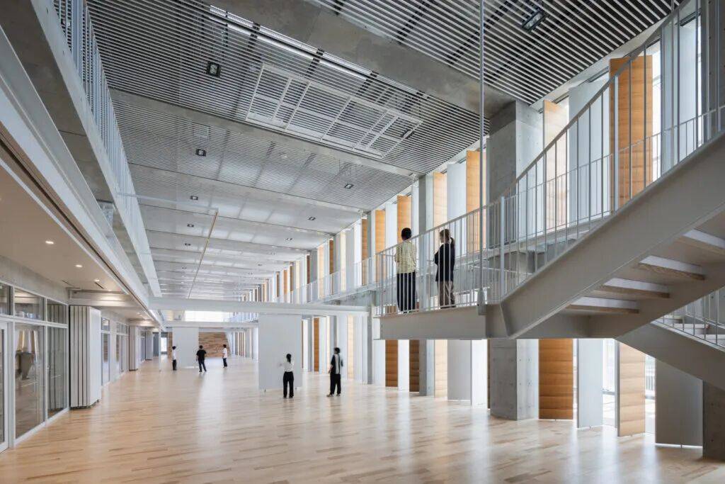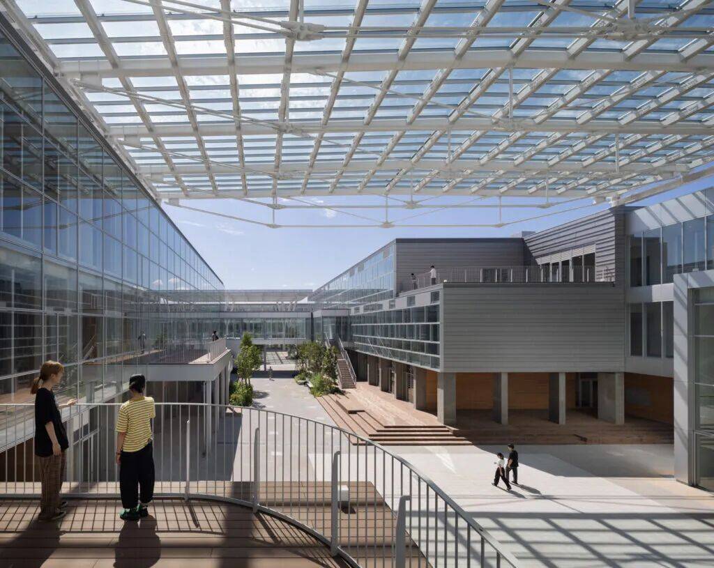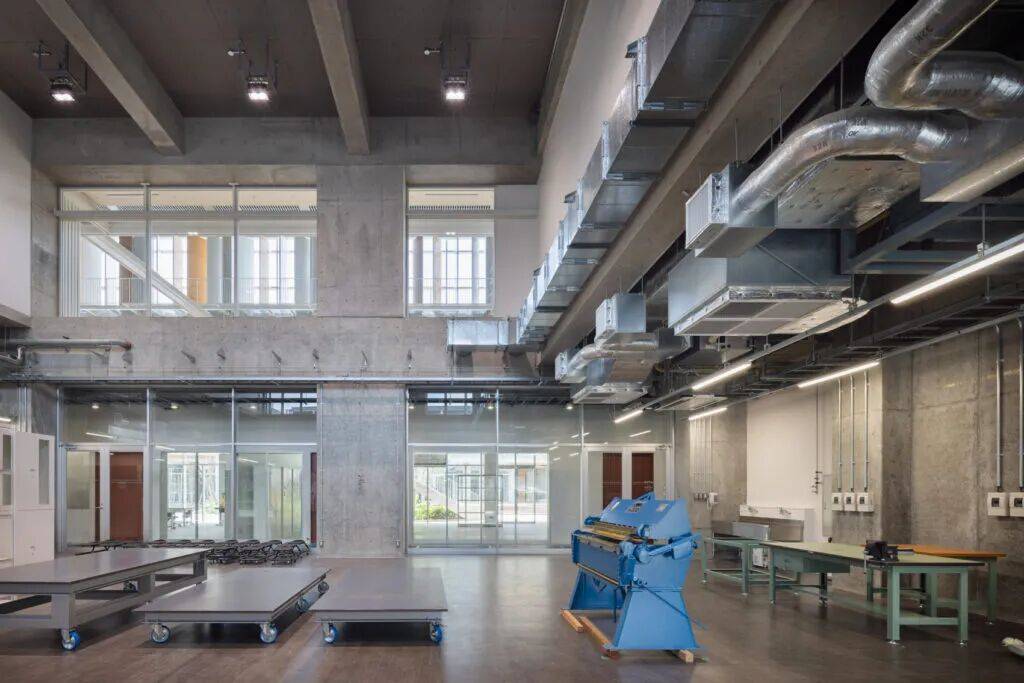 亮点:通过中庭与公共通道连接工作室、展厅与交流空间,打造开放灵活的艺术教育环境,部分空间向市民开放,促进校园与城市融合。