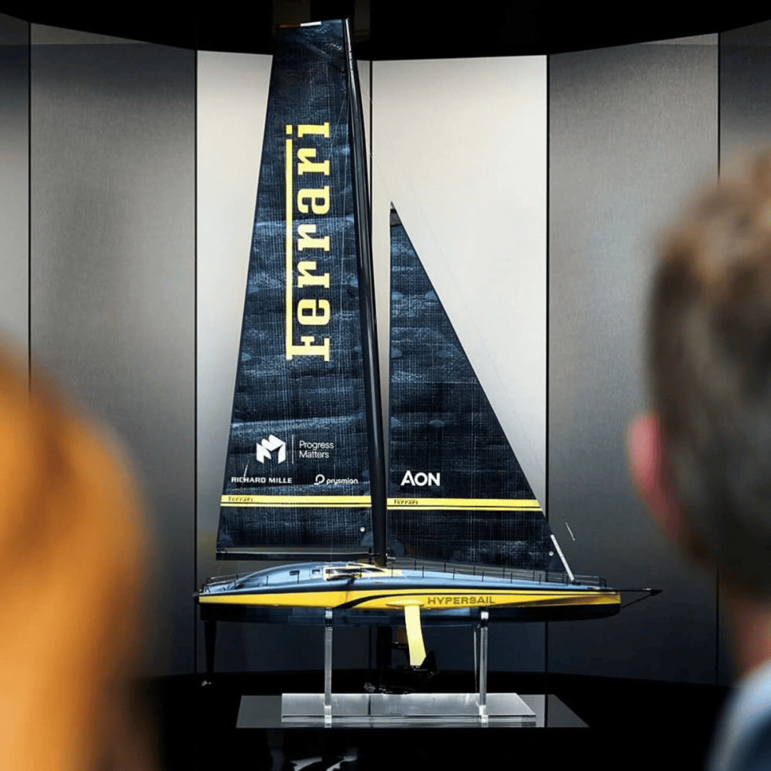 法拉利在米兰设计周重磅发布 Hypersail,品牌首款约 30 米远洋飞行单体水翼帆船,由法拉利设计总监 Flavio Manzoni 领衔设计工作室,联手传奇航海建筑师 Guillaume Verdier 与法拉利技术团队共同打造,将超跑空气动力学、碳纤维工艺与海洋航行科技融为一体,实现从赛道到海洋的跨界突破