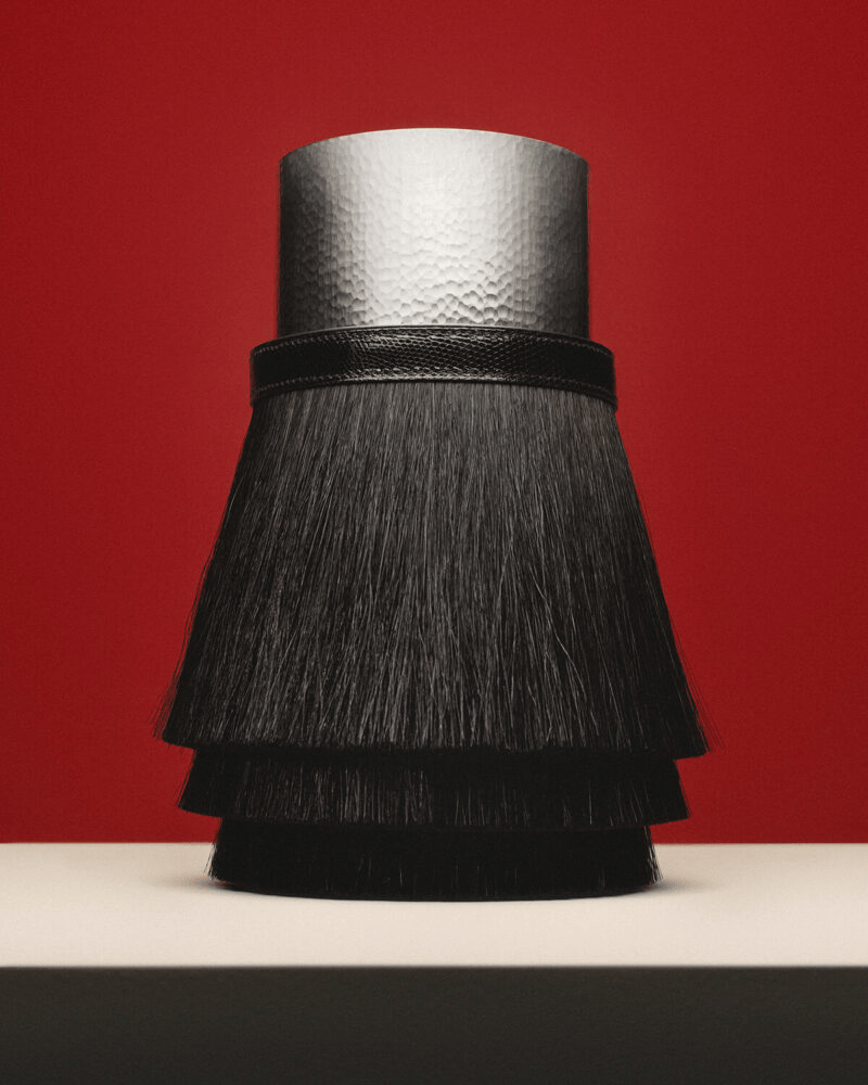 锤纹钯金器皿搭配马毛装饰,还原手工锻造的细腻质感。