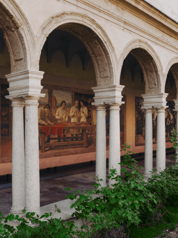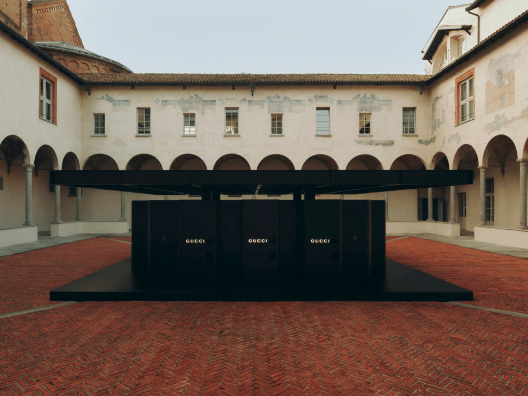 古驰创意总监 Demna 以 Gucci Memoria 为主题,在圣辛普利西亚诺修道院(Chiostri di San Simpliciano)呈现品牌 105 年历史全景,将时装史转化为沉浸式艺术叙事。