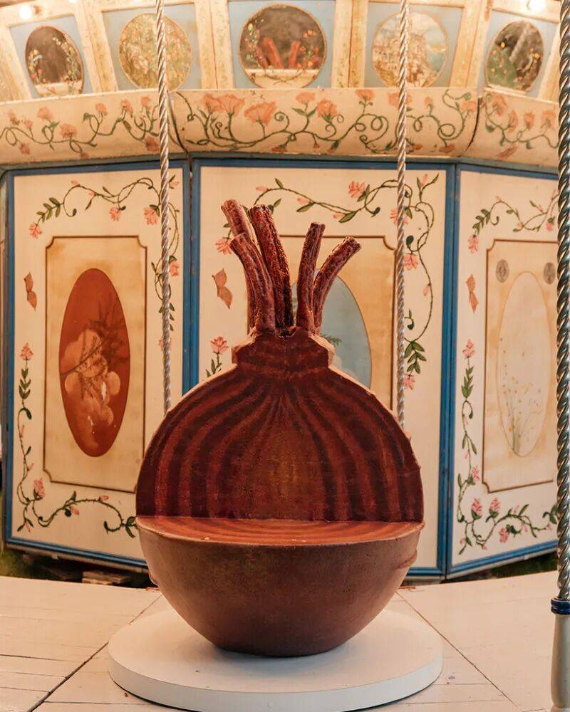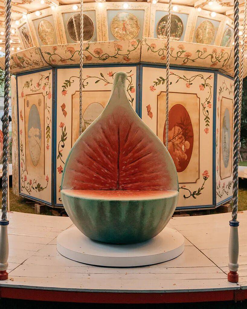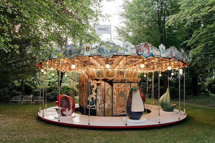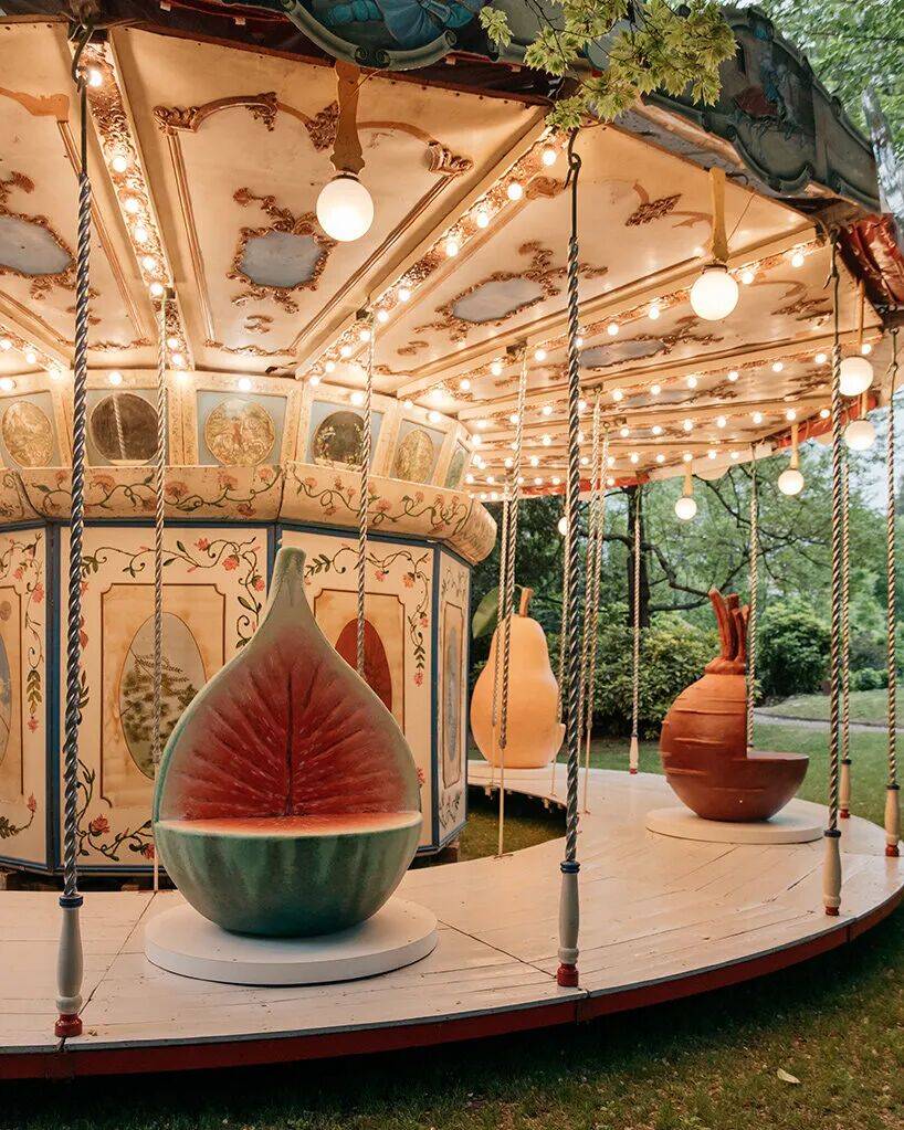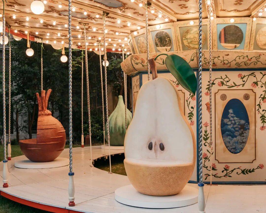 这是由艺术家 Laila Gohar 与服装品牌 ARKET 联名打造的超现实蔬果旋转木马。装置的核心定位为“公共参与式艺术装置”,以复古旋转木马为载体,通过超现实的形态设计,模糊艺术与日常的边界,同时同步推出艺术家首个成衣系列,实现装置与时尚的深度联动。