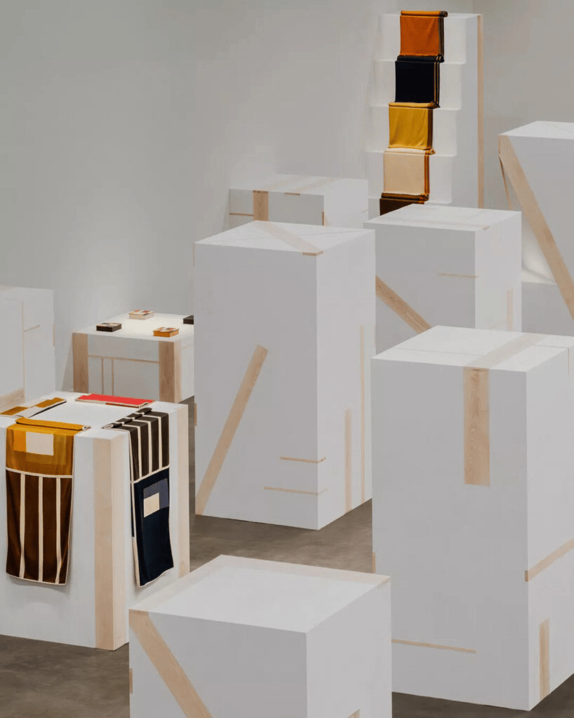爱马仕以 The Material Speaks, The Object Tells A Story 为理念,在 La Pelota 展馆打造极简留白的展览空间,让家居器物成为叙事主角。