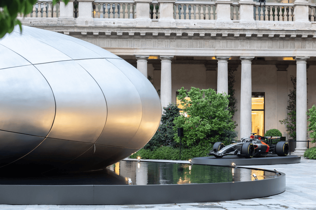 装置同时致敬奥迪首次进入 F1 赛事与 RS 5 车型发布,将汽车设计的运动基因、科技感与建筑美学融合,拓展奢侈品牌跨界设计的边界,证明工业设计与时尚艺术本就同源。