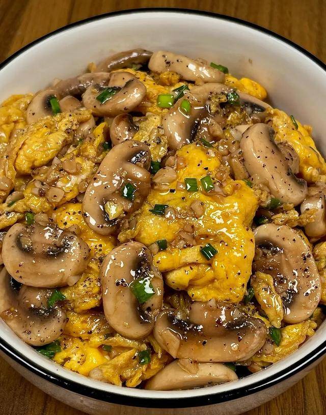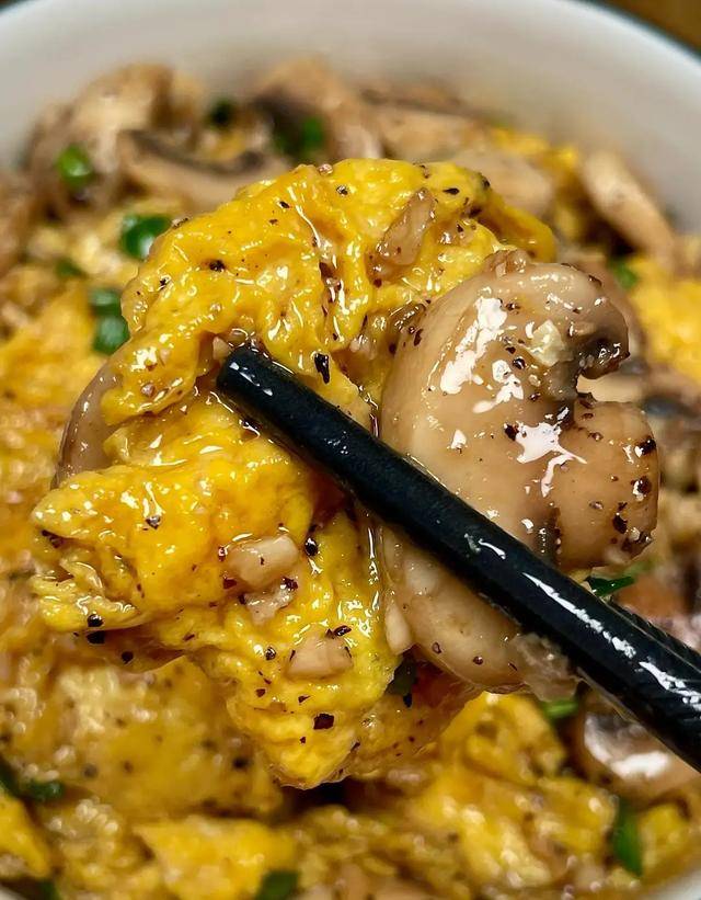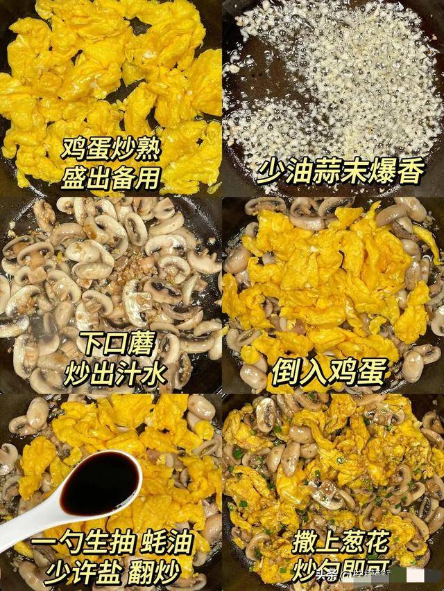 口蘑鲜,鸡蛋香,这菜配米饭能吃两碗。口蘑里的核黄素对眼睛特别重要,缺了核黄素,眼睛会怕光、流泪、看东西模糊。