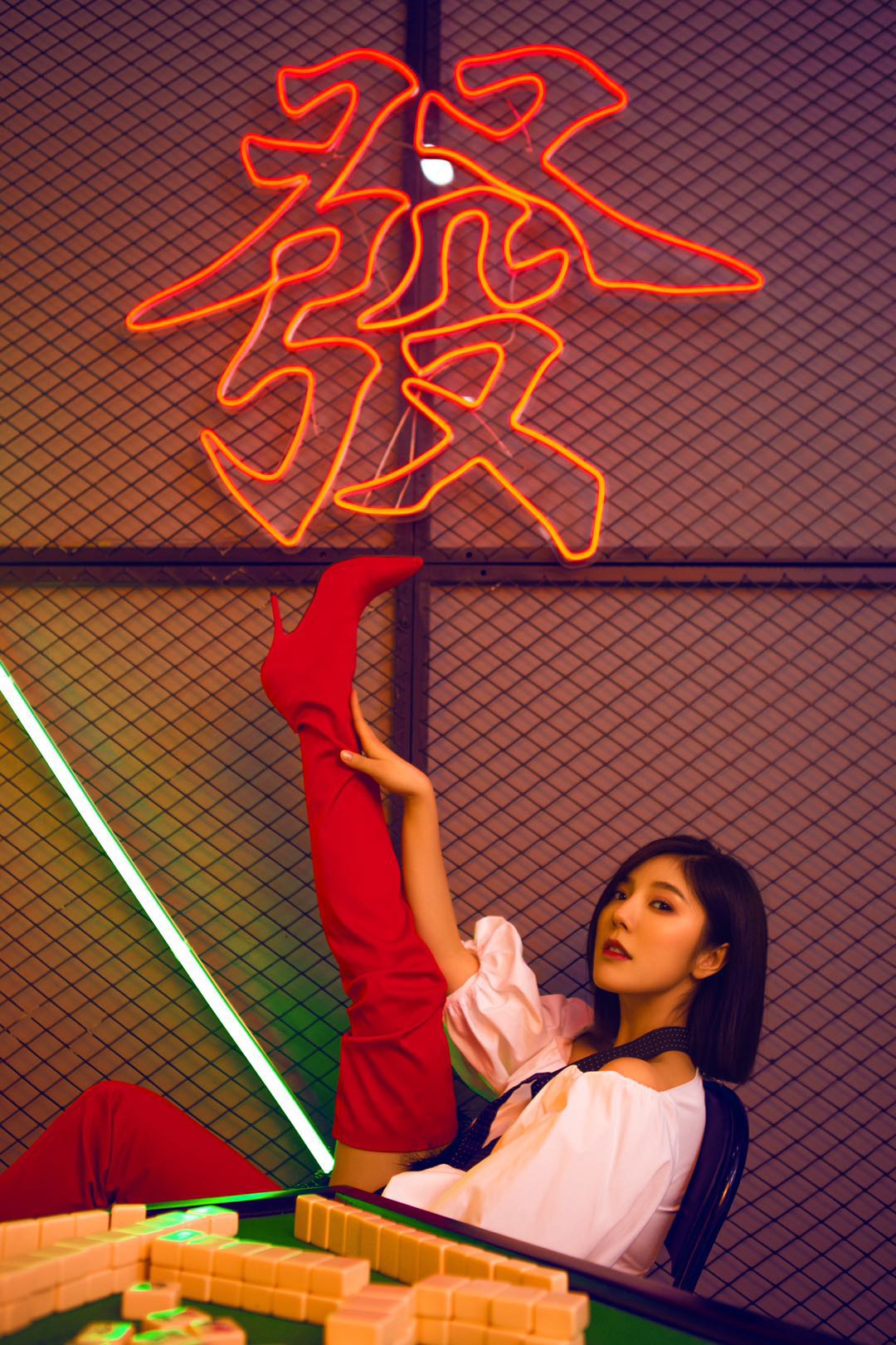 赵奕欢红唇长靴 大秀复古性感风[7P]