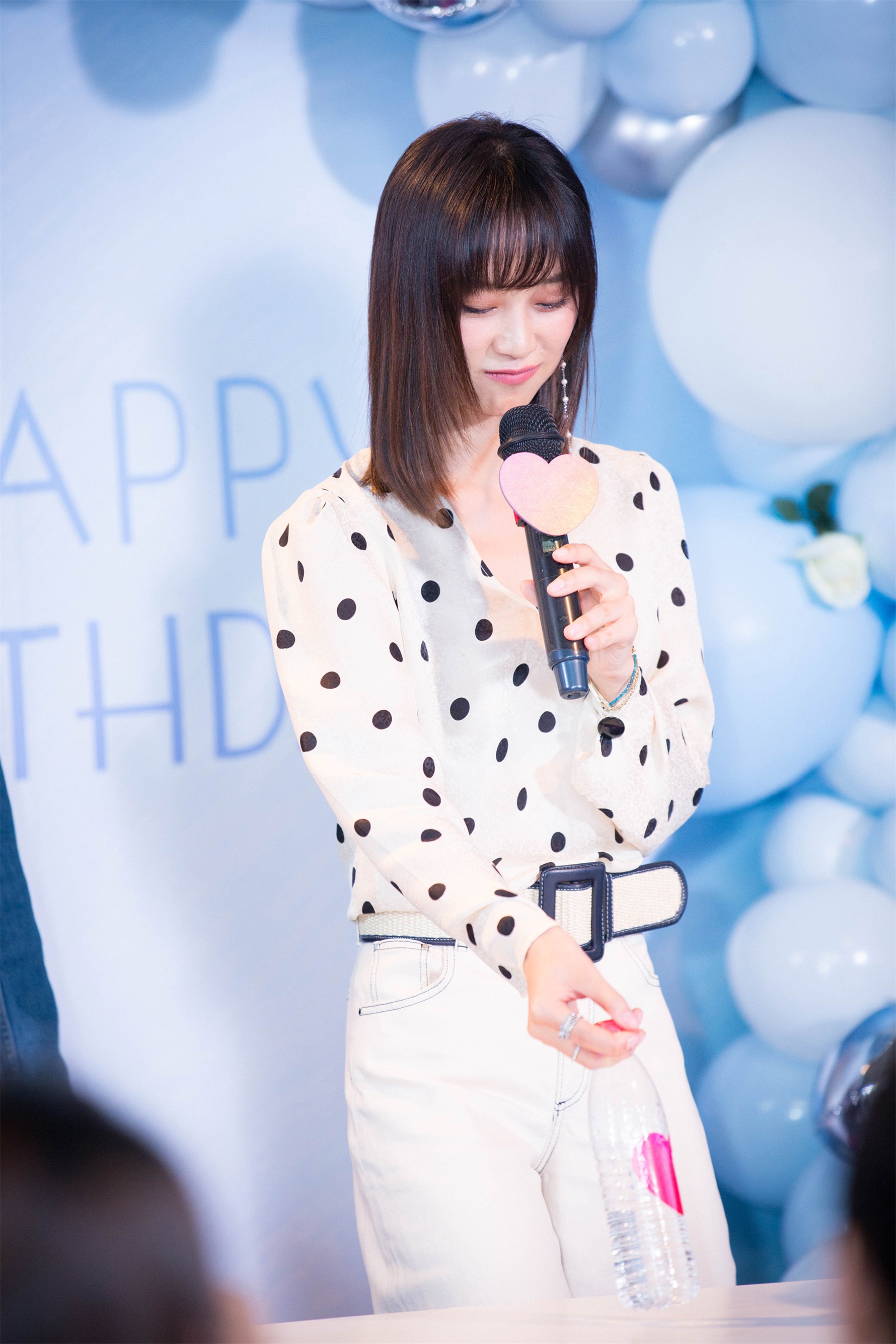 蓝盈莹 粉丝合影 蓝盈莹与粉丝欢乐互动超甜“蓝朋友”暖心十足 蓝盈莹身穿波点雪纺上衣搭配白色阔腿裤亮相生日会现场,优雅简约,颇具时尚质感。当天,蓝盈莹以一首动听的《City of Stars》开场,温暖动人。在之后的游戏环节中,蓝盈莹与大家欢乐互动,甜度满分。先是在“你演我猜”环节挑战与粉丝的默契度,又在“今日请打卡”环节因为记不住绕嘴的地区名字而引得台下粉丝笑声不断。最为贴心的是,蓝盈莹在每个游戏环节结束后,都为粉丝送上了温暖的拥抱,暖心十足。生日会现场高潮迭起,欢笑与甜蜜并存。期间蓝盈莹也透露了自己目前的工作状态,正在剧院排练话剧《古玩》,还大方表示要给“蓝精灵”们准备话剧票。除话剧之外,她接下来还将有电影《紧急救援》,电视剧《逆光》、《欢乐英雄》、《时间都知道》等作品和大家见面,令人充满期待。