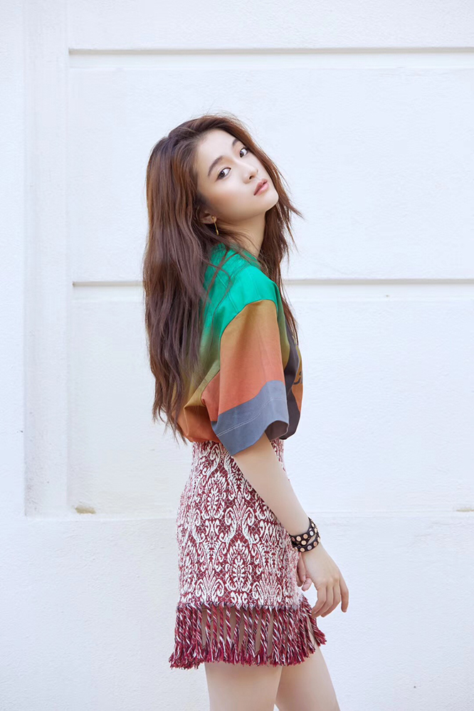 张雪迎搭配黑色皮质外套,摇滚范十足。轻烟熏的妆容颇具酷感,反转魅力令人眼前一亮。