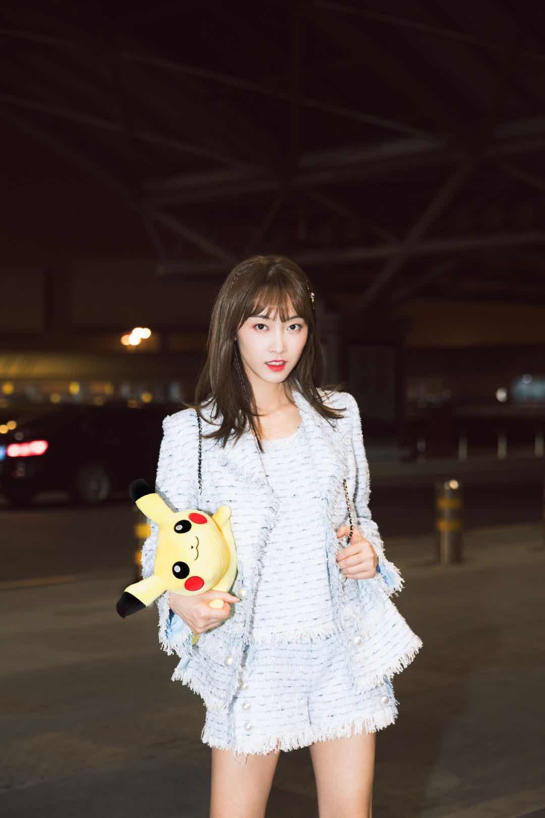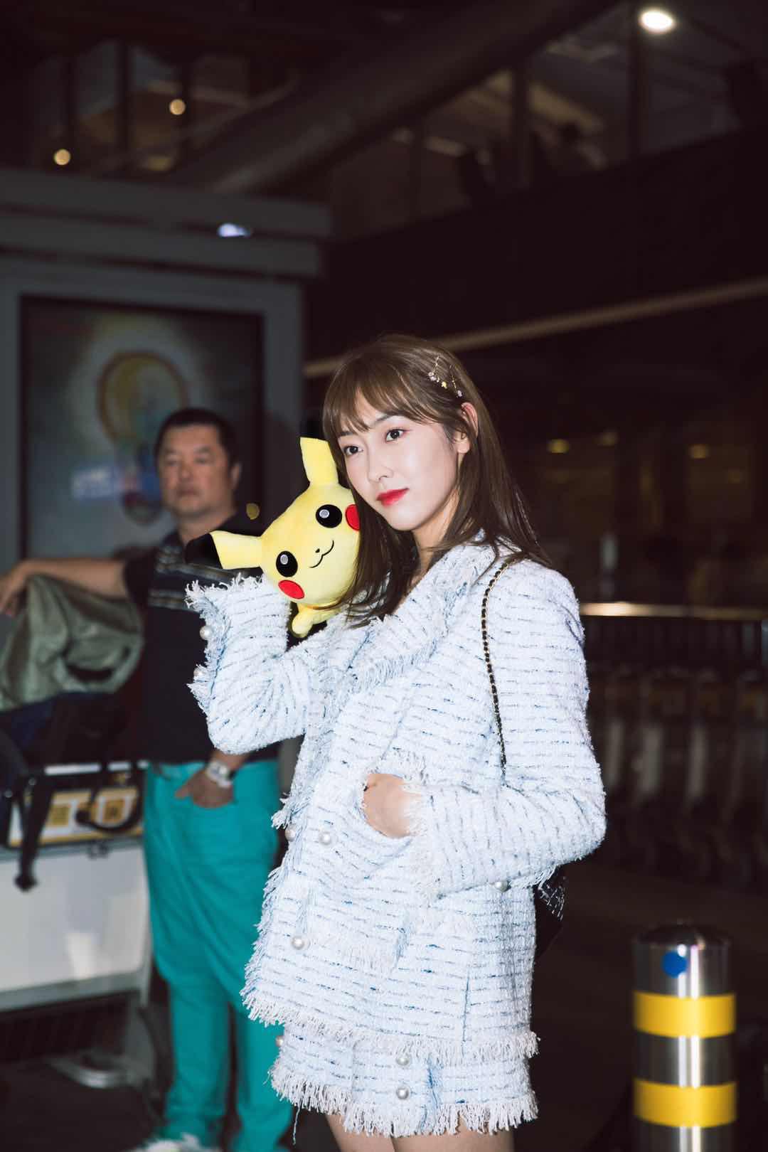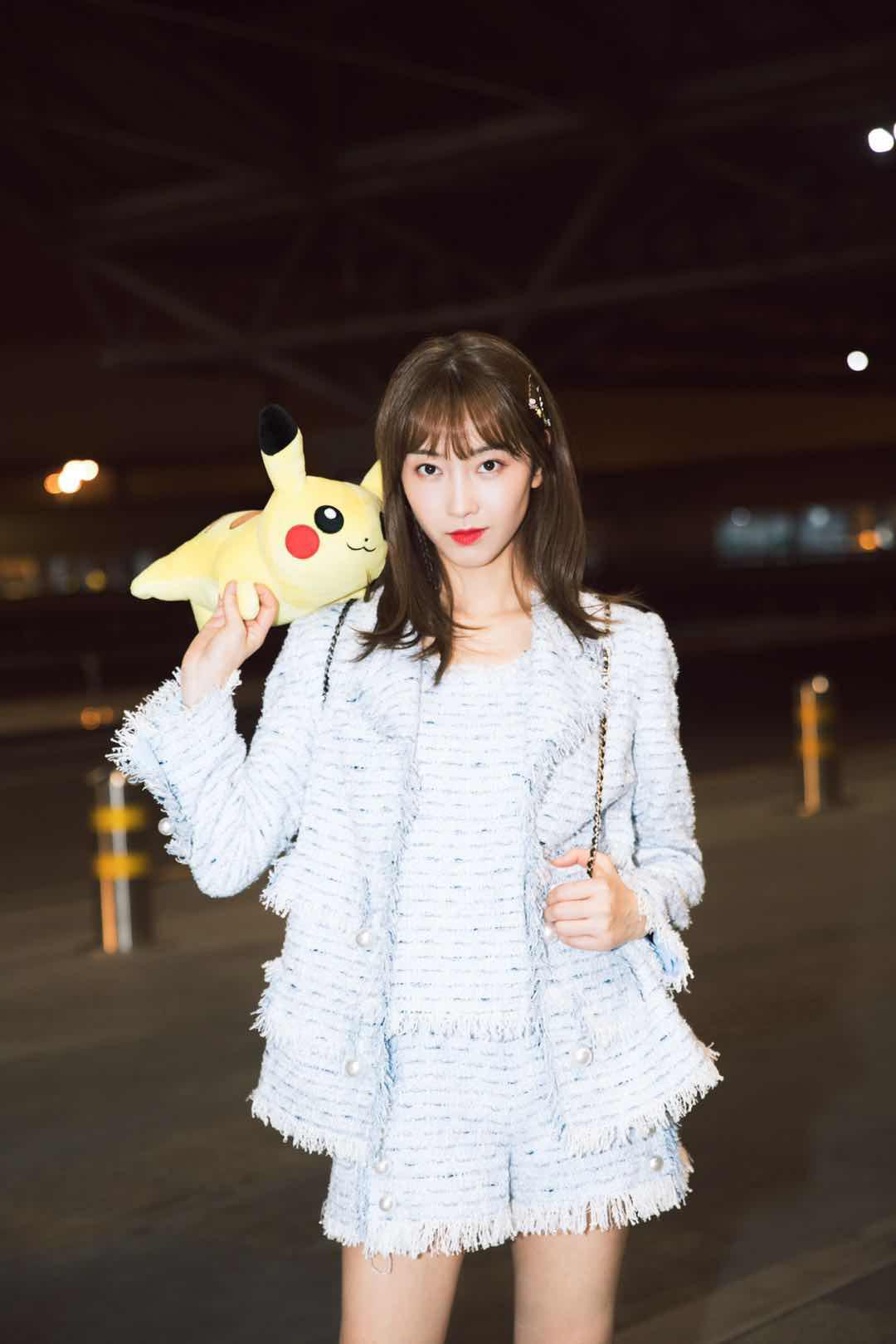 带皮卡丘出街!宣璐流苏套装亮相机场巴掌脸一字卡又飒又甜[8P]