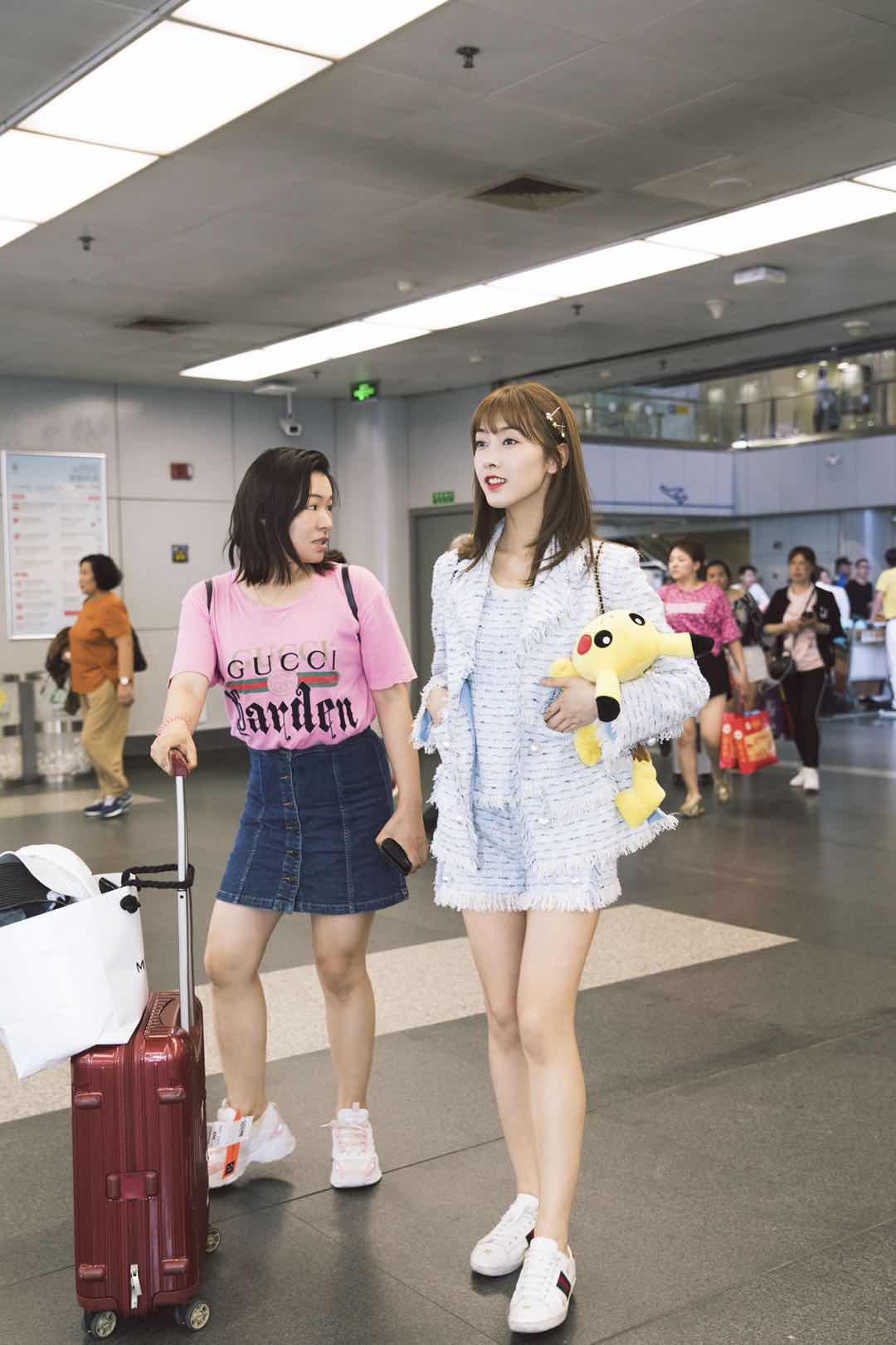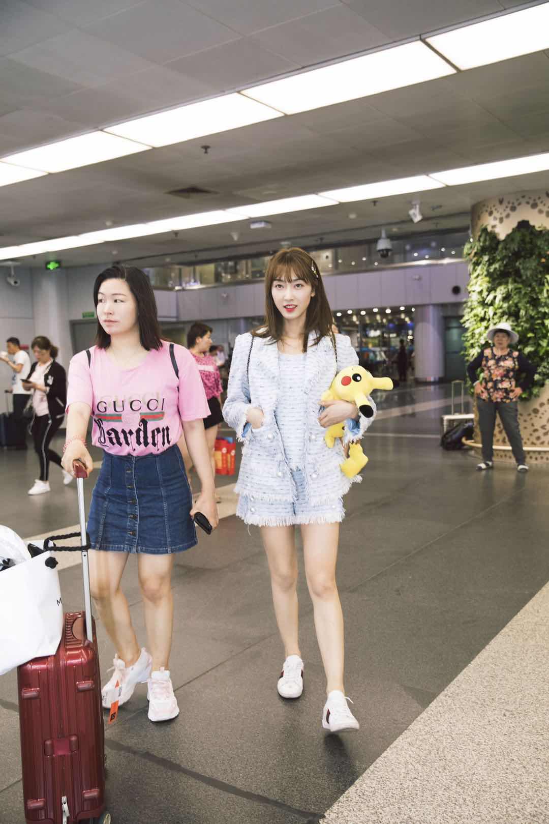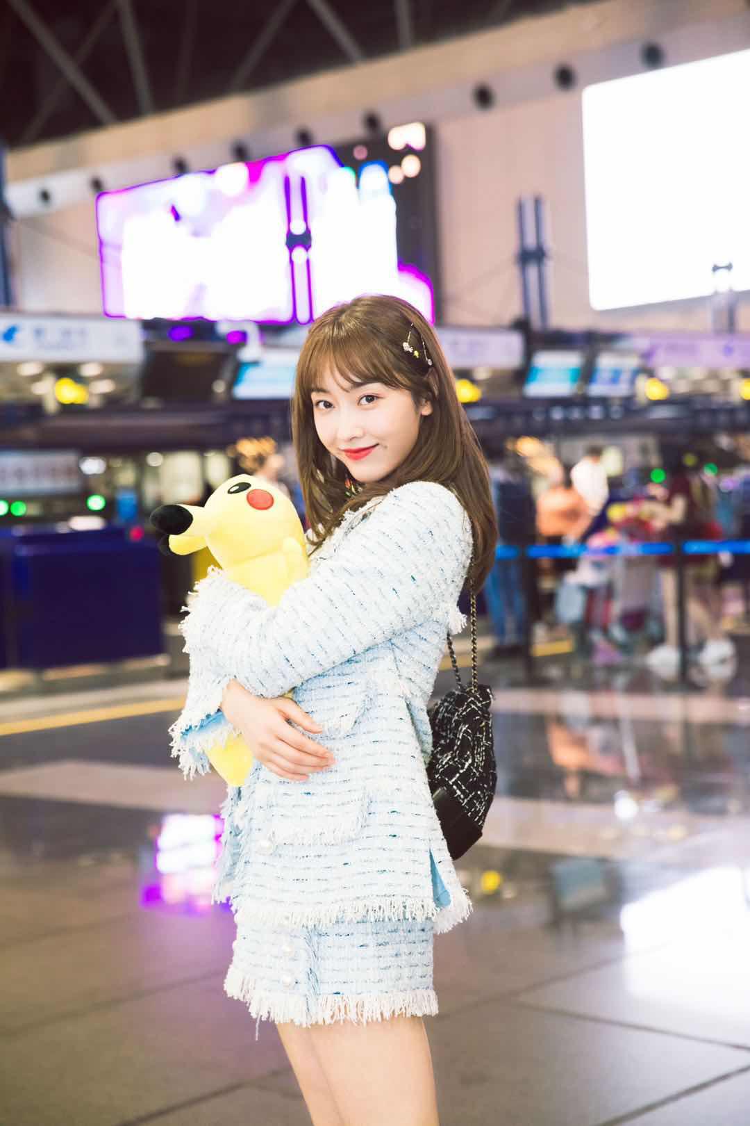 带皮卡丘出街!宣璐流苏套装亮相机场巴掌脸一字卡又飒又甜[8P]