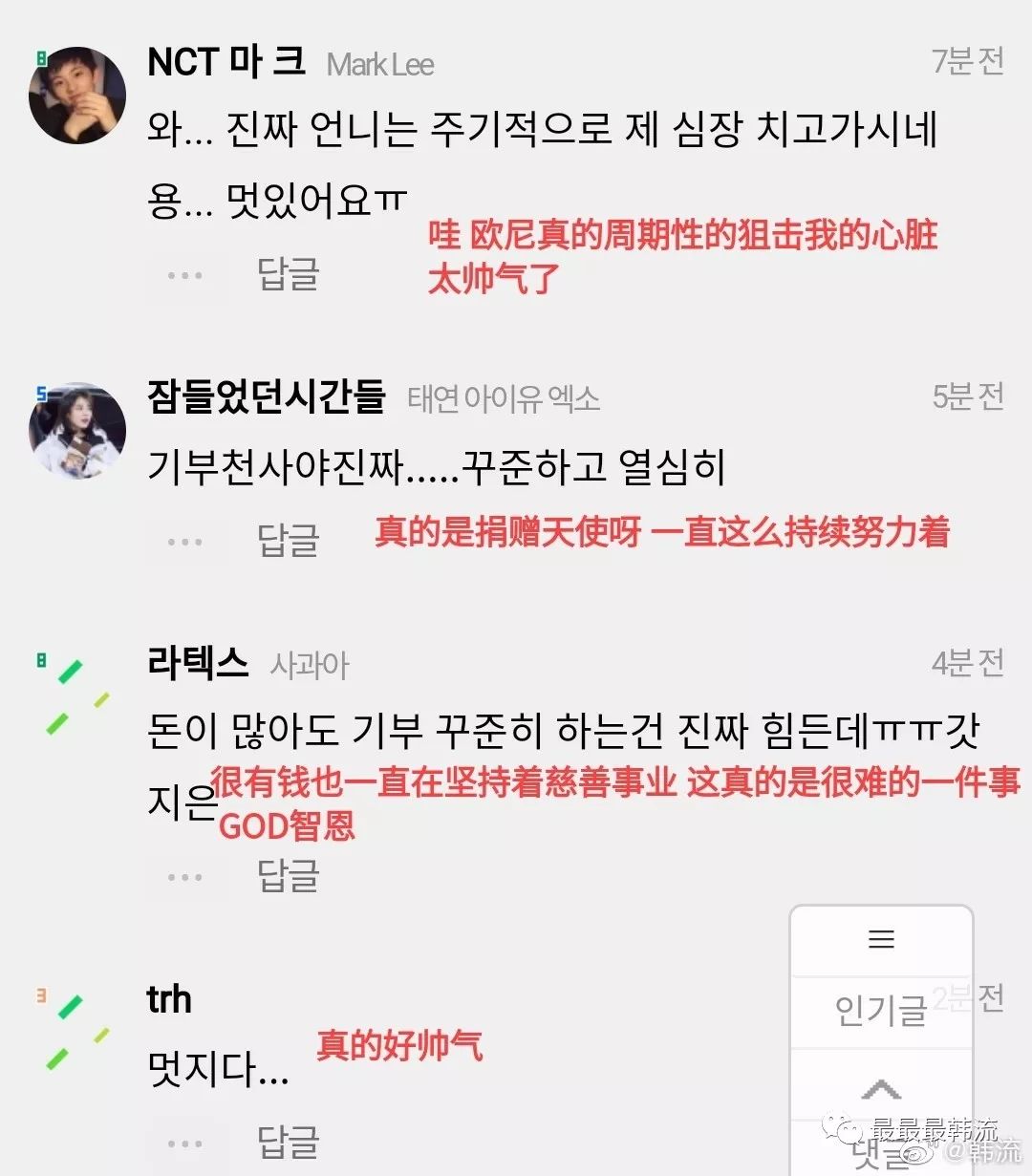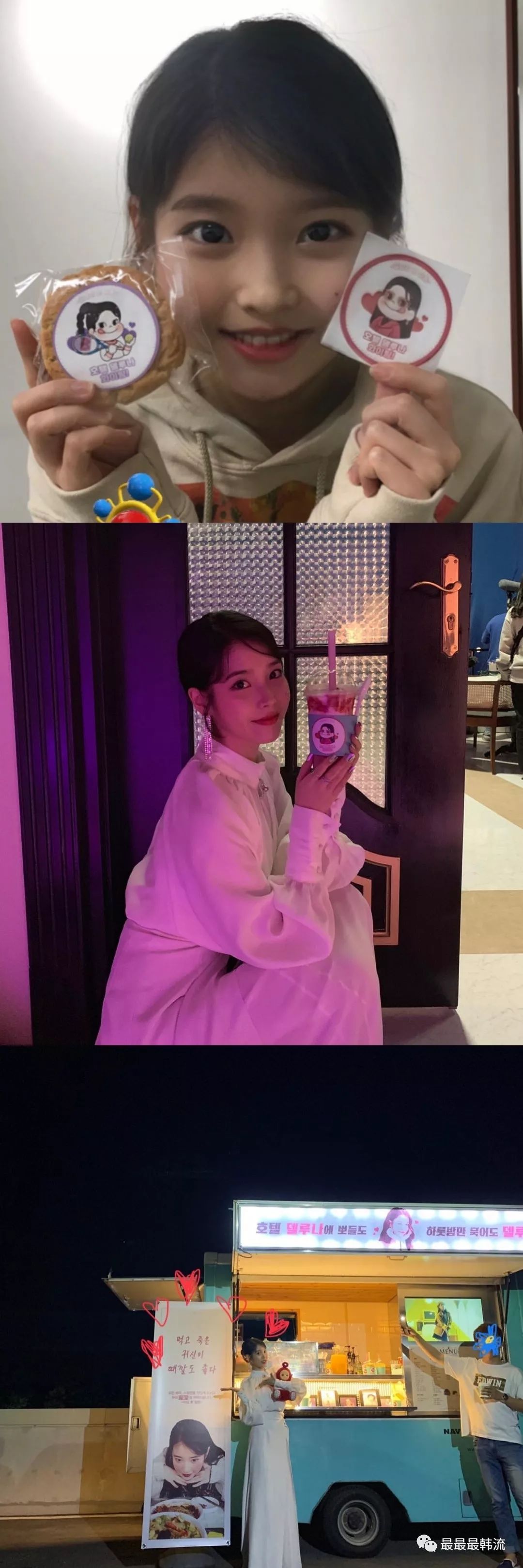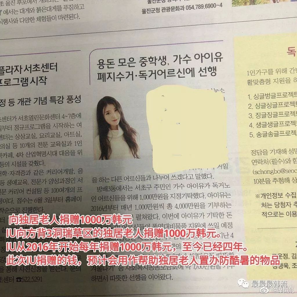 大家晚上好呀,今天是数年前普鲁士西里西亚纺织工人起义的日子,无产阶级从此登上历史舞台。 无产阶级的诸位姐妹们,一起看看美女搞点娱乐活动吧! 今天的主人公是演员李知恩。 大家应该知道吧!我们李演员正在拍电视剧呢。 昨天,宋慧乔前辈给正在拍摄新剧的知恩送应援餐车啦! 可能会有小可爱想要问,宋慧乔和李知恩这两位美女何时有了交集。 其实,宋宋夫妇在17年的12月9号去了IU的演唱会,并且一直到安可结束才走。 之后IU在认哥上也提到了这段缘分。 从来不会在舞台上紧张的人,陷入了前所未有的紧张之中。 IU整场演唱会都处于超紧张的状态,行注目礼什么的也太可爱了吧! 演唱会结束后,宋宋夫妇还给IU发送了短信,说演唱会很好看。 所以乔妹会在IU的新剧拍摄期间送来餐车呀!漂亮的人们建立了友谊,真好啊。 餐车超级丰富,应有尽有哦! 横幅上的内容是“美丽知恩和《德鲁娜酒店》的工作人员们,加油哦!” IU也发来了认证照,表示非常非常感谢宋慧乔前辈的惊喜礼物。 IU宝贝和乔妹互关啦! 除了乔妹的餐车外,IU的站子也送来了餐车,知恩也都好好地拍了照。 190522 iudalnara应援小吃车 190531 jieuninus应援餐车、咖啡车 柠檬也好想投喂美丽知恩啊嘤! 而且!柠檬从6月初就开始期待7月的到来。 因为!《德鲁纳酒店》预计七月开播! 自从看了简介和各种路透,柠檬就一直期待着这部剧。 前几天,tvN新剧《Hotel Del Luna》公开了由李知恩和吕珍九等演员剧本阅读照。 以封印了千年之灵的“德鲁纳酒店”为背景,讲述在首尔市中心有着古典外观的酒店里,漂流在这个世界的灵魂呈现出华丽的真实面貌的故事。 千年之灵?那李知恩是不是又有古装啦?!! 再一看导演和编剧,《当你沉睡时》吴忠焕导演执导,《主君的太阳》《花游记》洪氏姐妹执笔。 这岂不是告诉我们四个大字“追!就!完!了!” 男主角是童星出身的吕珍九,“国民弟弟”的演技柠檬非常放心,《拥抱太阳的月亮》里就把我帅晕了。 他在《成为王的男人》一剧中一人分饰两角,精湛的演技收获好评一片。 而且...吕九珍比李知恩小四岁,姐弟我可以! “千年来没有哪个坏女人,坏家伙比她犯过更大的罪。” 好绝的人设啊!到底有多坏!有多坏我都可以! “千年来一直跟客栈花园里一颗从不开花的老花木一起以时间静止……的状态存在。” “因为没有生的记忆,便没有罪的记忆。我对什么人犯过怎样的罪,带着怎样的报应,我无从知晓。” 满月这个名字也是酒店里千年老树的名字,因为在它身边呆着就认为它是自己的名字,是漫长地延续了很久的“满月”,便取名张满月。 同月亮般高傲、美丽但怪异的社长张满月,跟李知恩莫名的搭诶。 开着灯的建筑物、奔跑的车、喇叭的声音、来到南山塔的人们,是夜幕下首尔的模样。 在充满神秘气氛的影像之中月亮全部升起,预示着"德鲁纳酒店7月盛大开业"。 带有"月光下的酒店"之意的德鲁纳会有什么故事呢?好期待呀! 今天IU在INS上传了拍摄花絮,是一段骑马的视频。 因为这一段视频,电视剧上了naver热搜一位,我们李演员的热度真的牛 (cr.@IU-恩骑守护站) 姐姐骑马好帅气,像是敢爱敢恨快意江湖的侠女,李侠女今天我们在哪家客栈投宿? 但是我们宝贝马上就来了一个反转,骑马的时候有多帅,下马的时候就有多傻。 怎么这么可可爱爱啊! 上马张满月,下马李知恩。 近年来,IU投入到演员身份的时间比较多,但是每一次以歌手身份回归都能取得非常优秀的成绩。 比如说,恭喜IU获得第14届Soompi Awards年度最佳女solo。 在春天出演了tvN电视剧《我的大叔》后,IU以歌手身份回归,并于秋天发行了单曲《BBIBBI》。 尽管IU没有在打歌节目中宣传这首歌,“BBIBBI”仍是第二周的冠军歌曲,并且连续三周位居榜首。 除了人美歌甜外,李知恩还拥有最善良的人性。 从2016年开始每年都为独居老人捐款,至今已为方背3洞瑞草区的独居老人捐赠了4000万韩元. (cr.@韩流) 如果不是这次的报纸报道,也许再过四年我们也不知道IU的善行,这样的默默付出和坚持是很多人都做不到的吧。 (cr.@韩流) 捐款1亿元给绿伞儿童基金会,希望能帮助到灾民,却被网民们质疑行为古怪,因为受灾群众中并没有小孩。 还好公益机构及时发文澄清,因为受基金会长期赞助的儿童们和家人的房子被山火烧毁,所以以这样的方式进行捐款。 IU一直是绿伞儿童基金会的赞助者,而且IU不仅捐款给该组织,也有固定资助母校东德女子高中、首尔市聋哑人支援中心、胜日希望基金会等等。 公益机构也发帖抨击了质疑IU捐款意图的网友,告诫他们不要散播不实谣言。 真!人美心善,是我们会精准扶贫的捐赠天使IU呀。 在5月1号举行的第55届韩国百想艺术大赏中,IU以《我的大叔》获得VLIVE人气奖。 IU:听说这是粉丝们投票得来的奖项,感谢不分昼夜为我投票的Uaena。 恭喜演员李知恩。 无论是作为歌手IU,还是作为演员李知恩,她都完成的很好。 宝贝冲吧!新剧大发! ---