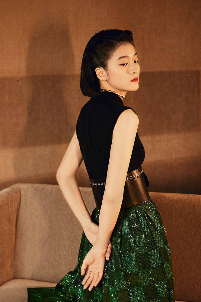 6月16日,青年演员张雪迎以格纹亮片半裙搭配马鞍包腰带的优雅造型,亮相电影盛典红毯现场。复古风小绿裙搭配清爽干练的短发,颇具民国名伶复古气质。