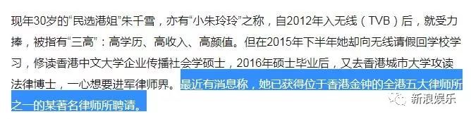 TVB小花朱千雪,大家脸熟吗? 演过《EU超时任务》和《踩过界》。 今天过31岁生日的她,在宣布结婚了! 与拍拖5年的医生男友吴昆伦正式入纸申请结婚。 因为朱千雪本人一直很低调,大家对她男友了解的并不多。 她这个医生男友,也就前两年曾被拍到过。 拍到之后朱千雪就出来大方认了,还说认定对方是结婚对象。 没想到,说到做到。 今天看她自己公布才知道,原来对象还是从小就认识的青梅竹马。 家里是世交,两人还在同一间医院出生,只相差三天! 一出生就认识,从小玩到大,青梅竹马,两小无猜,从玩伴到恋人又坚持了这么多年。 真的慕了,神仙爱情惹。 而朱千雪在TVB新一代小花里,也一直算路人缘不错的。 我蛮能get到她,人美性格好又努力。 她2012年参选港姐出道。 当年的夺冠大热门,一直被说是民选冠军。 因为那届TVB最开始要搞全民网络投票,那会票数最高的一直就是朱千雪。 结果到了决赛之际,因为服务器瘫痪,最终依旧按照评判分数来决定港姐名次。 最后,张名雅拿了冠军,亚军是以黑马之姿杀进三甲的黄心颖。 而朱千雪只拿了个季军。 黄心颖我们就不说了,她在没出事之前,口碑就不算太好,后来受捧多是因为马国明的关系。 而张名雅在夺冠之后发展也并不好,到现在作品也寥寥无几。 她们那届,发展不错且最被看好的就是朱千雪了。 TVB也算捧她,演了几部配角之后,就给了主角演。 首次担正女主角,和王浩信的那部《EU超时任务》还小爆了。 之后又在《踩过界》里搭档演情侣也圈了不少CP粉。 还一起拿过CP奖。 当然她本人也是争气的。 演技不算出彩,但路人缘不错。 很重要的一点,一直都是踏踏实实,不作妖又努力的人。 当时她演完《EU超时任务》,很多人看好她上位的。 结果上升期选择向公司请假一年,跑去读传播社会学硕士了。 2016年硕士毕业后,本来以为她会回归演艺圈的。 结果人家又跑去读法律博士了。 其实她本身学历就不错,毕业于加拿大的公立名校西蒙弗雷泽大学,主修商系和传理系。 就这样也不放弃努力学习。 她一直传闻家境不错 。 但读书这几年,经常会被拍到自己搭公交、搭地铁去学校。 动不动就对着电脑搞PPT做作业什么的。 之前不都说她要转行隐退了。 已经有知名律所向她抛出了橄榄枝。 觉得她的性格真做得出来。 以前也说过什么对演戏没执念,读书就是为了以后给自己多一条路。 一路选上了港姐,当上了明星,也没有迷失自己。 现在又和青梅竹马结婚了,还说准备好生小孩。 退圈隐退? 真的有可能吧!