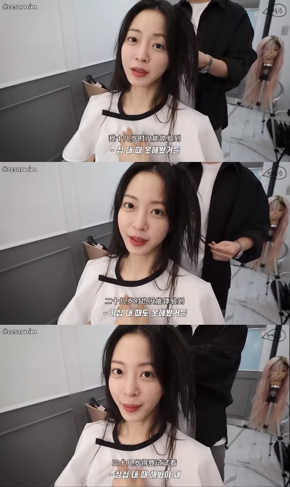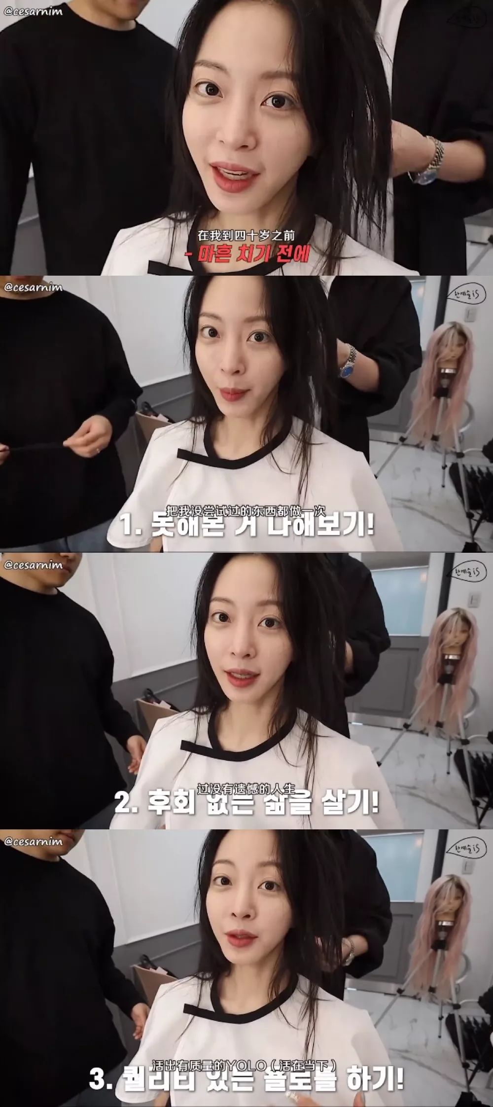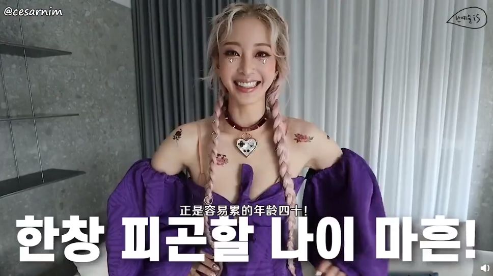 换了件超大蝴蝶袖的亮紫色抹胸衣 做了超可爱的“独角兽”主题七彩美甲 花了bling bling的超闪粉色水晶妆 还找出了自己买了很久的粉色假发,编了时下超流行的酷炫拳击辫儿 PS: 戴假发前素颜秃头都这么美…… 花了小半天时间做出来的造型果然没让人失望,酷到没朋友的look一看就是“超会玩欧尼”! 换上漂亮衣服、画了漂亮美甲与妆容的韩艺瑟也是超开心,整个人激动到不停转圈圈,咧着嘴角对着镜头喊“哟罗本(各位),我四十了哟” 然而也就是韩艺瑟兴奋时脱口而出这句话,让vlog突然画风一转 如果不是这句“我四十了”提醒,屏幕前看视频的我们大概都已经忘了,这个无论是超有趣性格、还是顶漂亮脸蛋儿都不输年轻女爱豆的韩艺瑟,今年已经40岁了 而这个年龄,在国内娱乐圈,恐怕已经是要被划入无戏可演的“中年女演员”范畴 40岁,老了吗? 可能老还算不上,但就传统观念而言,女人年龄中的40,绝不是一个听到会让人开心的数字 “男人四十一枝花,女人四十豆腐渣”,虽是一句芭姐打骨子里就不认同的戏言,但无疑,它反应了当下社会中大部分人对于40岁女性的刻板印象与普遍看法 40岁,是与青年阶段告别的分界线,是大众心里一个人正式迈入中年的标志 40岁的女人,被夸赞时不会再是“年轻、漂亮、活力与可爱”,而是会被形容成“成熟、气质好、气场强、有韵味……” 可再反观四十岁的韩艺瑟,似乎与这几个词语并不沾边,一头扎眼的粉发,双手bling bling的美甲,二十岁都羡慕的身材,与一张与出道时无异的脸蛋儿