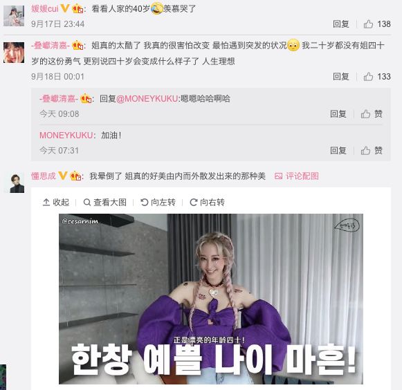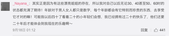 在韩艺瑟这条vlog下,有这么一条留言——“其实正是因为有这些漂亮姐姐的存在,所以我对自己以后无论30、40甚至50、60时的状态都充满了期待!年龄对于男人女人都只是数字,每个年龄都会有它特别而珍贵的东西,去享受它才对” 如果没有刻板印象,什么年龄都能做自己想做的事,谁还会去恐惧这本只是计数符号的年纪?