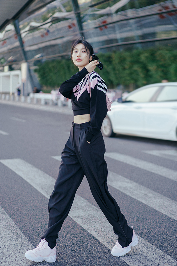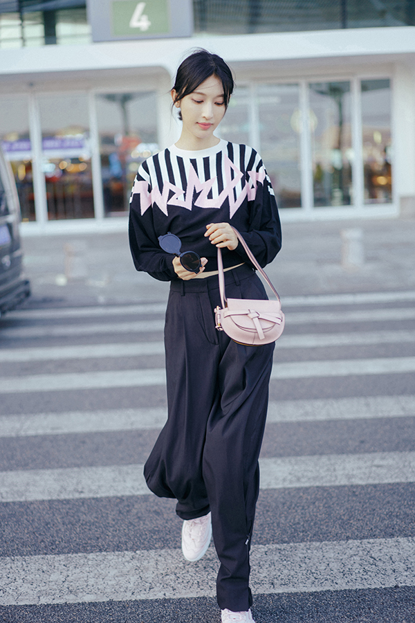 今日,演员张俪曝光一组全新街拍。粉墨撞色卫衣微露腰际线,搭配垂坠质感改良西裤,随性又时髦,甜美妆容与简单马尾尽显清纯少女感,粉色系挎包和运动鞋演绎深秋轻时尚。张俪侧目颔首,与秋日午后的阳光融为一体,嘴角的笑容温暖寒风,尽显青春洋溢。