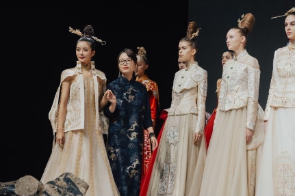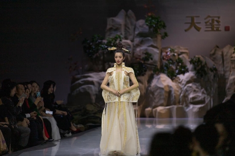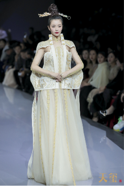 2019年10月29日晚,中国国际时装周上演了一场“中国风”时尚盛宴,青年演员种丹妮受邀作为SS2020天玺『樂園』系列大秀开场嘉宾,她以一袭金丝勾勒高定礼服登台,拉开了整场大秀的序幕。