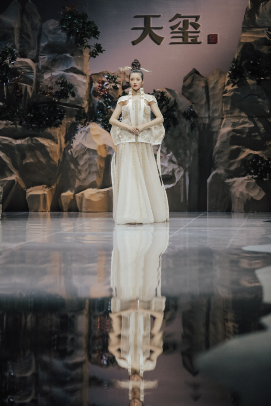 值得一提的是,该礼服为天玺著名设计师张舰为种丹妮量身设计的『樂園』之境系列高定礼服,搭配上知名造型师郭钧所打造的传统与时尚相融的造型,为本场秀起到点睛之笔。