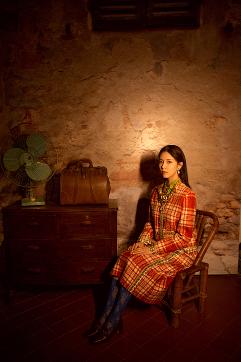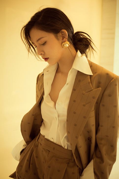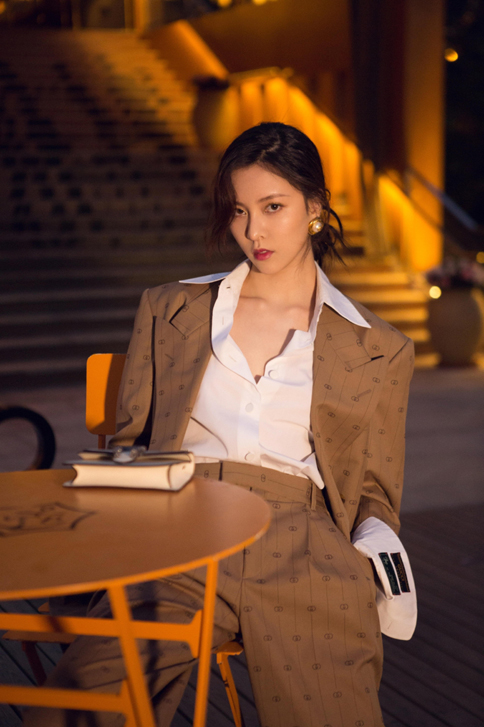 当晚的活动之中,以穿搭见长的宋妍霏精准诠释了“时尚细节”的巧思,菱形图案的真丝衬衫搭配橘红格子呢裙装,又以蓝色蕾丝袜与皮革手袋做装点,多重元素碰撞出强大自信魅力,在温柔婉约间任意游走。在率性且自带气场的“复古工装”上,用白色的方根皮鞋与珍珠耳环做调配,动静间皆是柔情绰态。两组造型既能凸显细节上的高级,举手投足间又能彰显明媚光彩,为深秋之味添染了几丝活力。