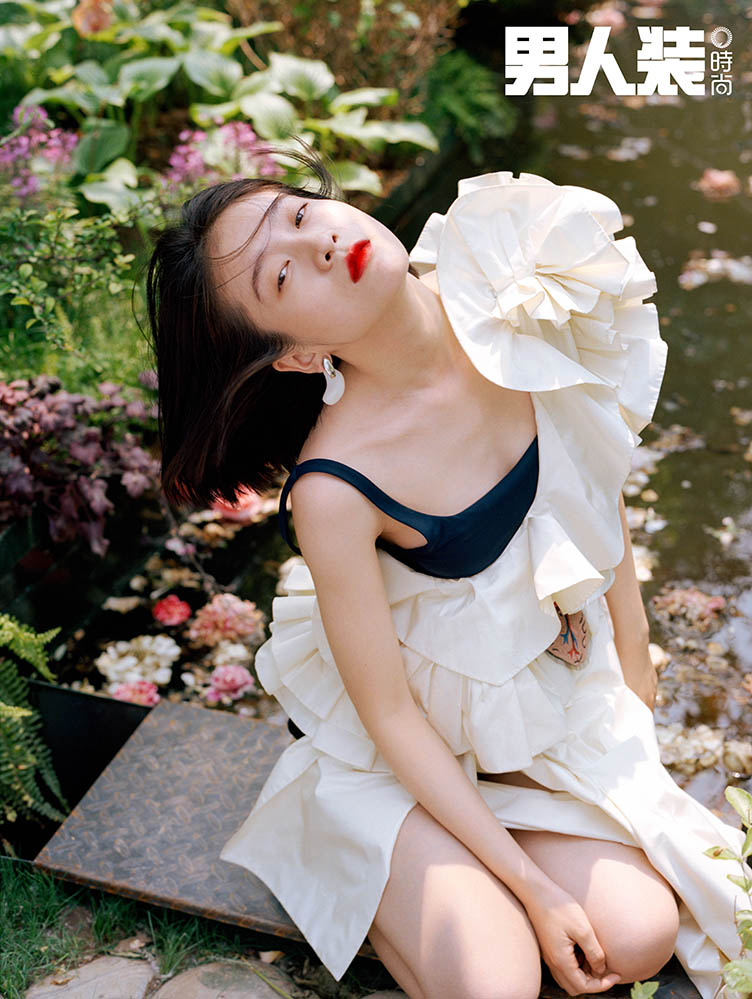 11月1日,张雪迎《男人装》十一月刊封面及内页大片曝光,女孩身着简单干净的纯白色吊带裙,初恋感十足,自在徜徉大自然林间,举手投足尽显清冷纯粹气质。