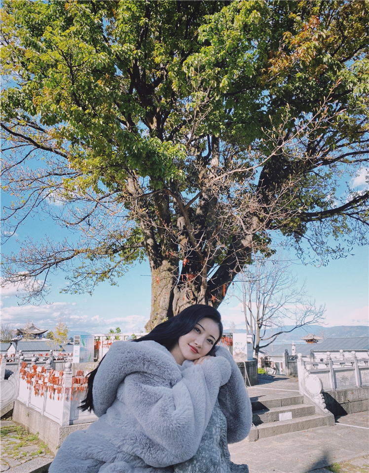 景甜分享一组在大理的冬日写真。身穿oversize巨型人造毛绒外套,温暖环保又个性时尚,呈现景美人甜的柔暖时光。大甜甜的冬日御寒神器你get了吗?