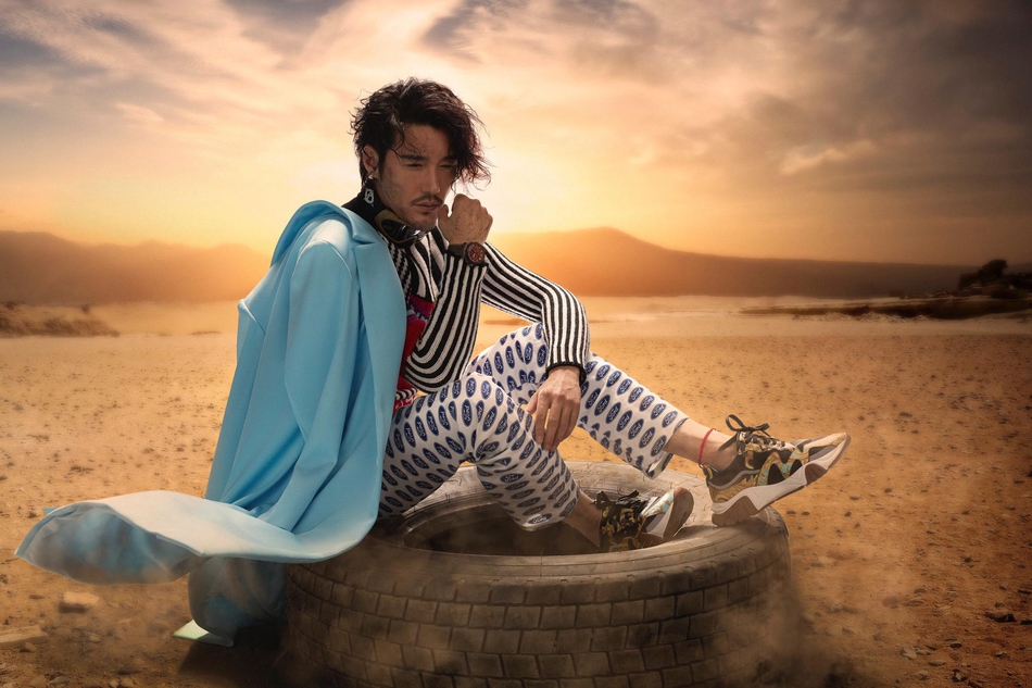 近日,胡兵新刊封面大片释出,他置身在荒野沙漠处,身穿五彩斑斓系服装自由切换。而另外一版封面则以反光黑为基调化身太空“冒险家”,手持未来科技感的降落伞,与时间赛跑,与未来对话。