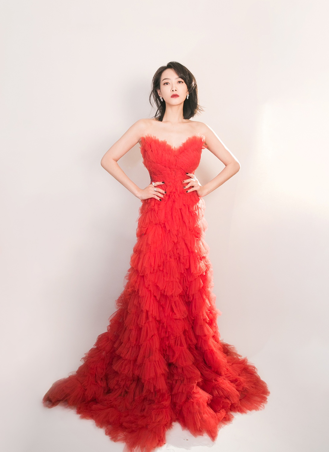 昨日,宋茜身穿红色纱质礼服裙出席2019国剧盛典红毯。一席蝴蝶抹胸红丝绒长裙似火似焰,错落别致的薄纱设计层次感十足,加上抹胸收腰的蝴蝶状剪裁,像是向上蔓延的火焰,又像一只翩然飞舞的蝴蝶,整体造型明艳大气,配上黑发烈焰红唇,优雅迷人气韵于不动声色间流露。自信优雅,明媚阳光,期待青年演员宋茜的每一次惊艳演绎。