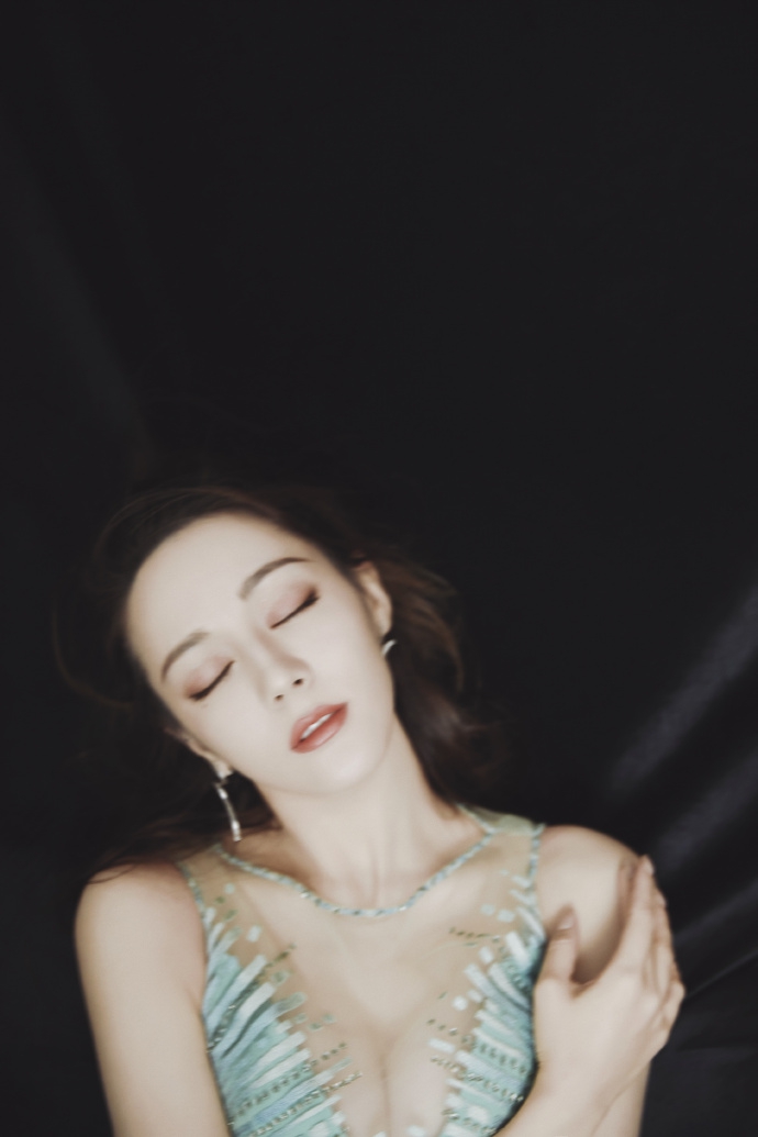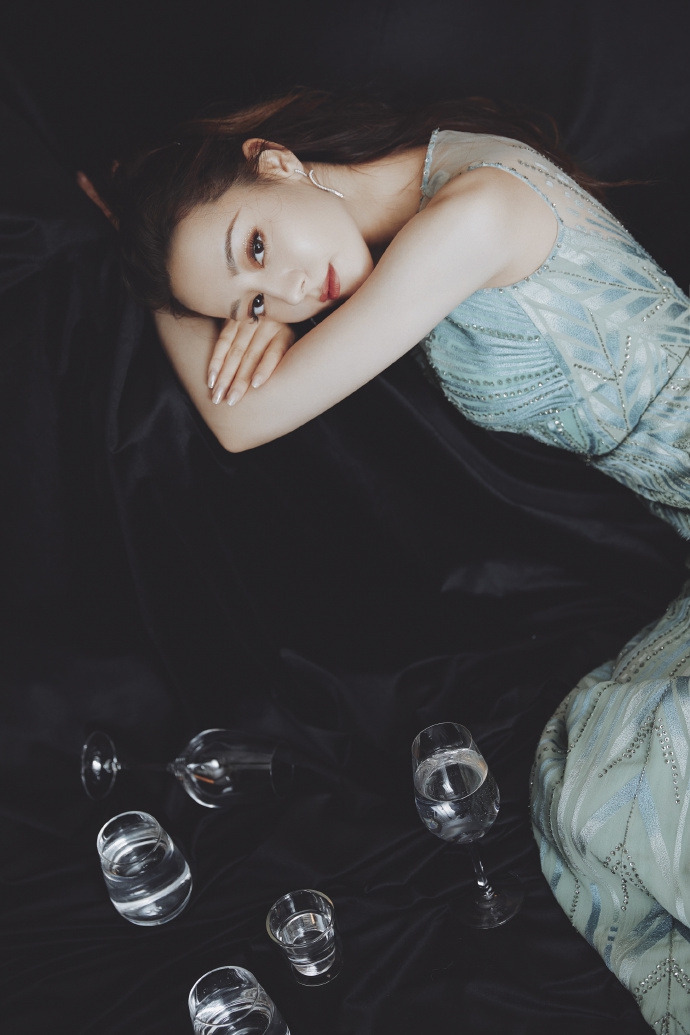 迪丽热巴深V薄荷绿长裙勾勒完美身形 撒娇卖萌狂吸粉[7P]