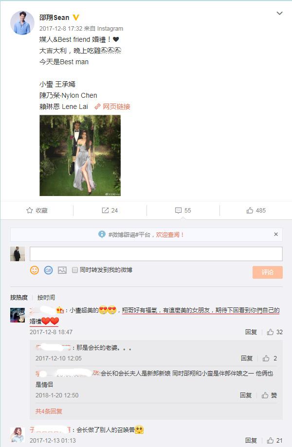12月19日,有媒体爆料称,30岁王承嫣与37岁演员邵翔Sean即将在明年结婚