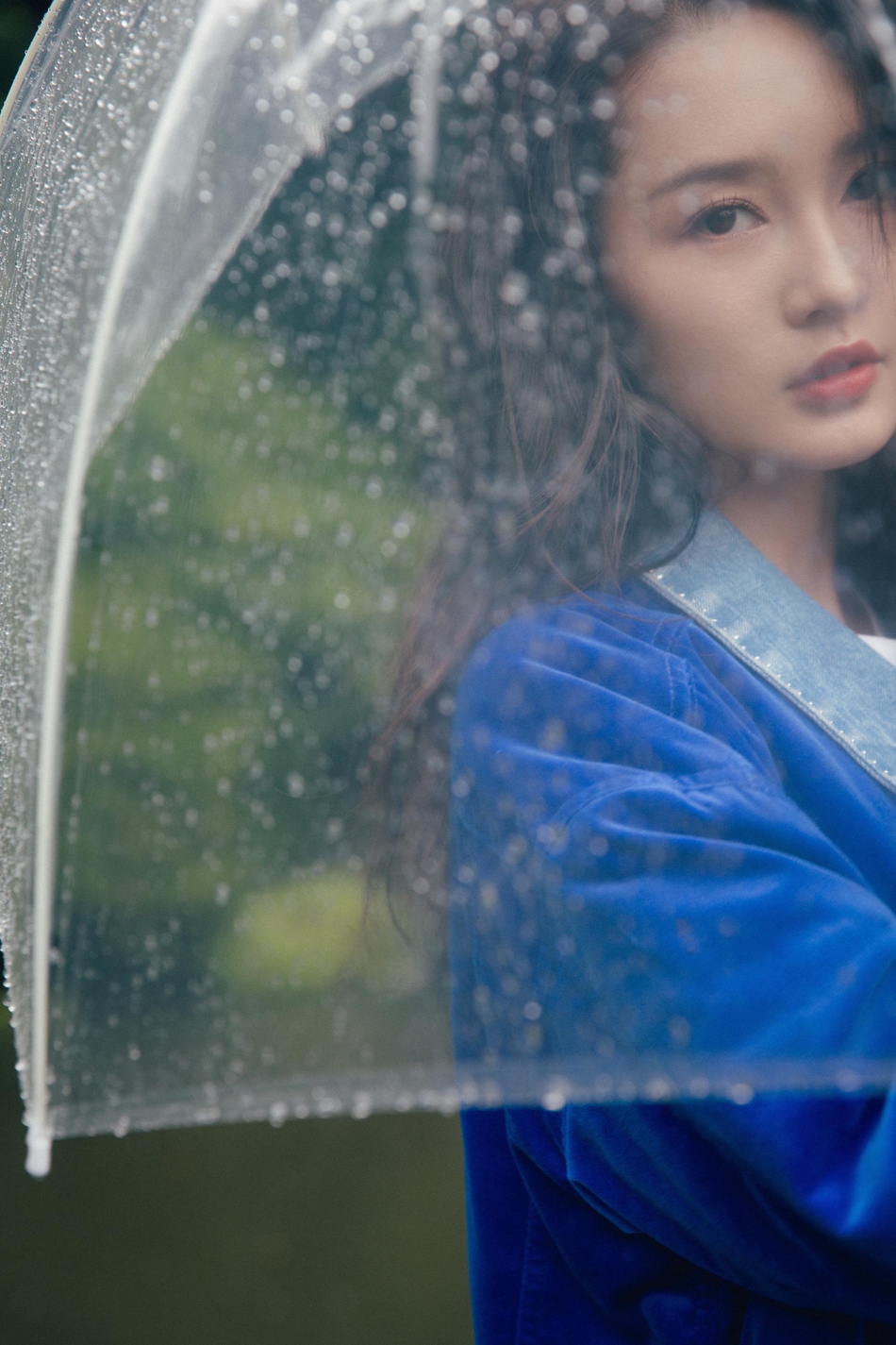 李沁身着宝蓝色牛仔外套简约随性 雨中漫步明眸动人[9P]