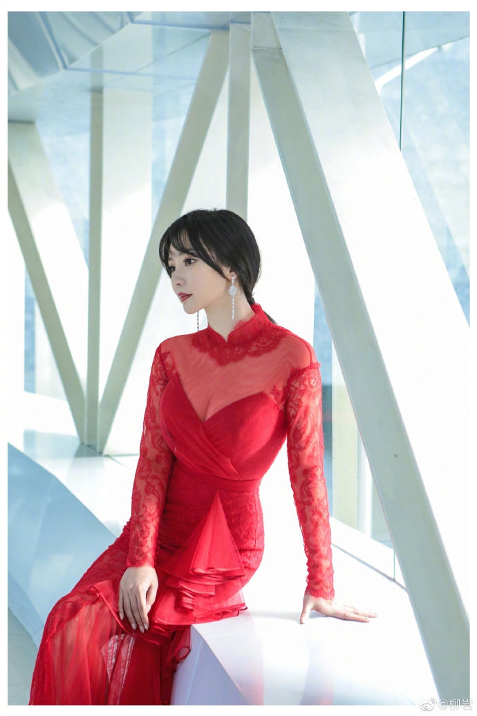 1月3日,柳岩在微博分享一组美照,并配文:“新年里 穿红衣”。照片中的她身穿一袭红色蕾丝透视礼服,深V领更是大秀事业线,性感撩人。
