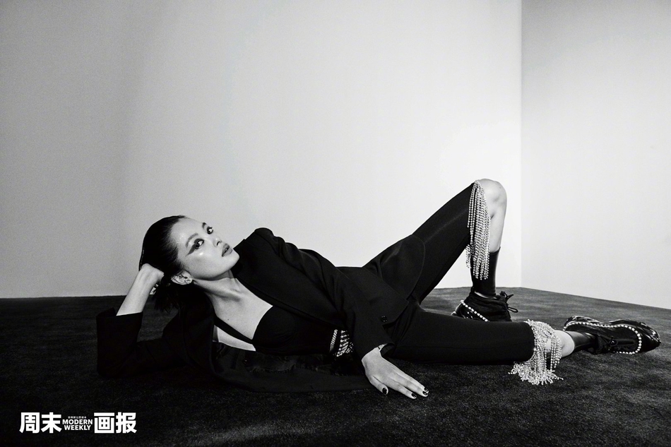 辛芷蕾登杂志封面秀傲人身材 梳背头穿西装上演暗黑诱惑[7P]