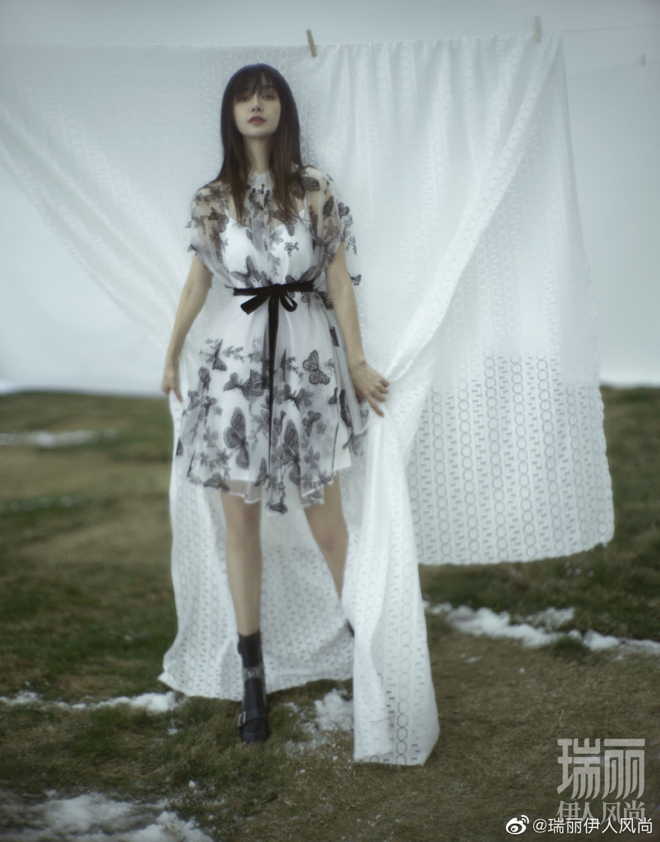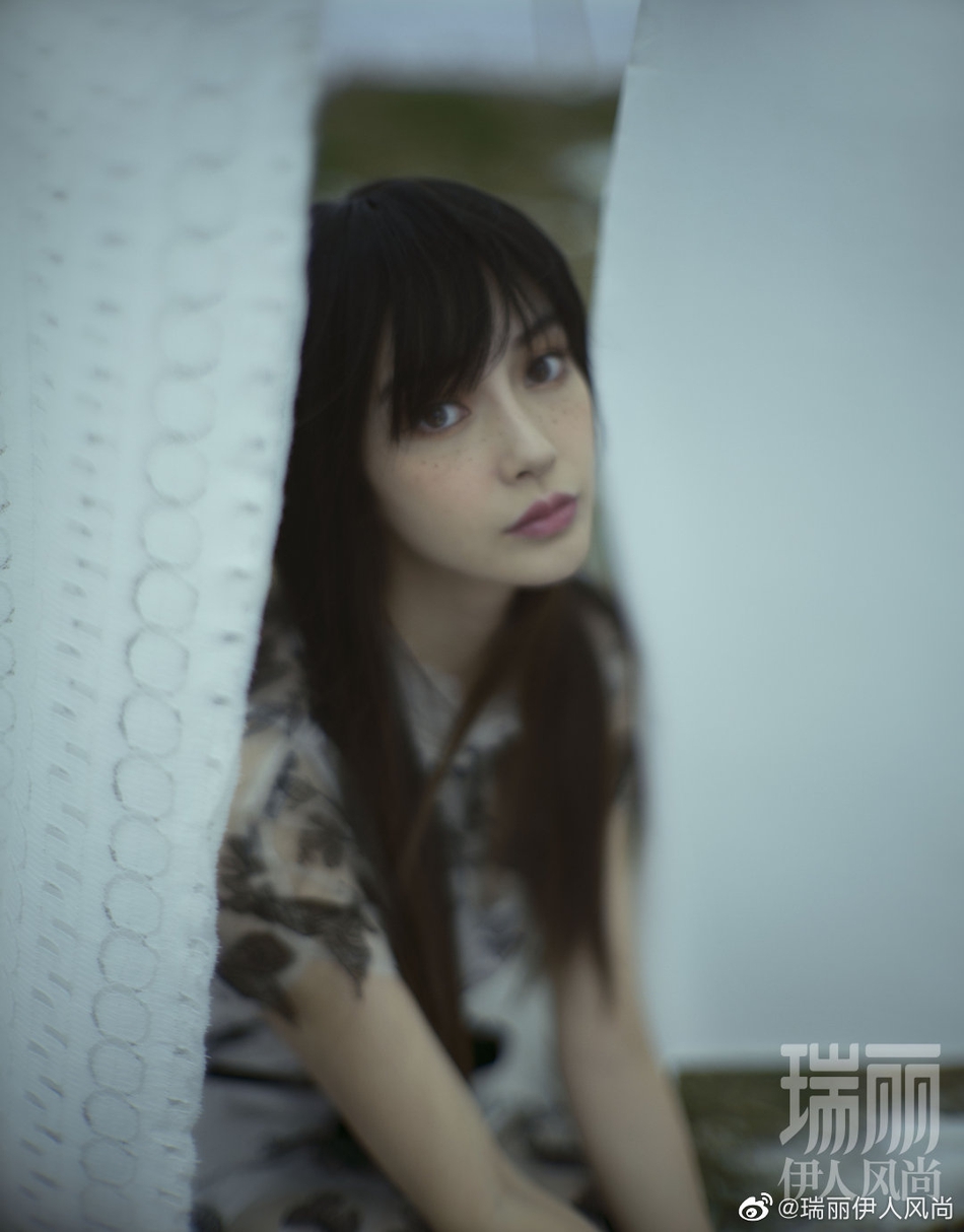 1月14日,Angelababy的一组雀斑妆大片曝光。照片中她一头乌黑的长发,搭配刘海十分清纯,冷色调下的长腿美背更加吸睛,完美诠释了冷淡的风格。