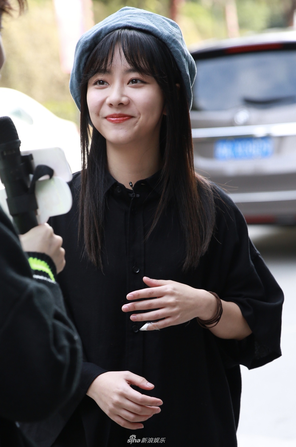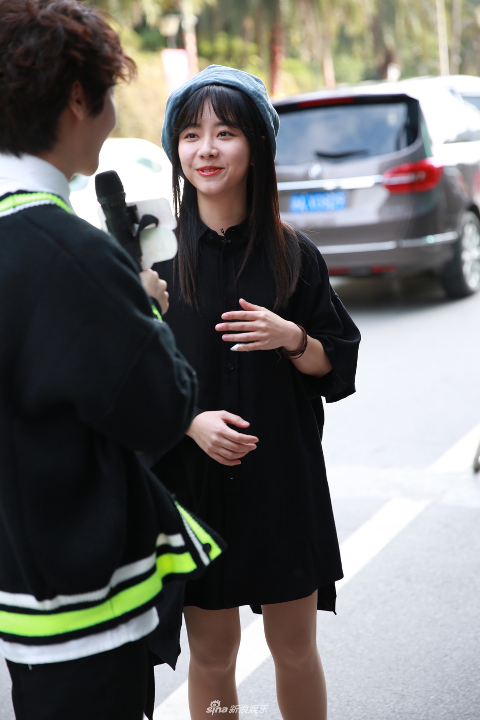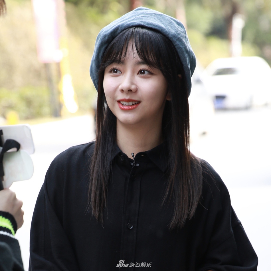 谭松韵穿黑色衬衫裙露纤细美腿 戴贝雷帽甜笑清纯可爱[6P]