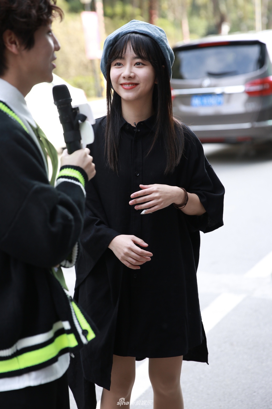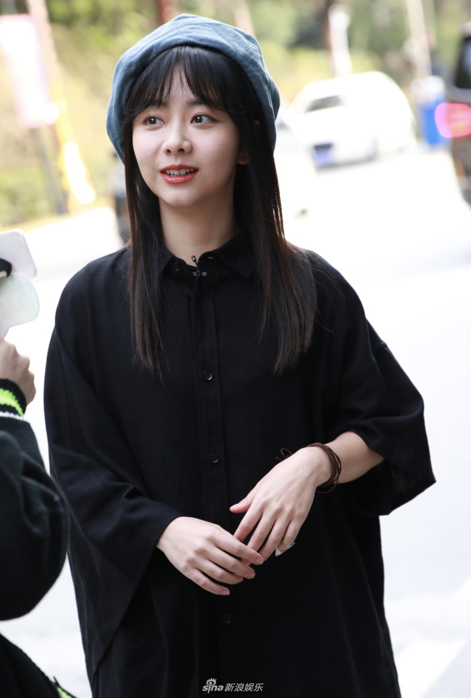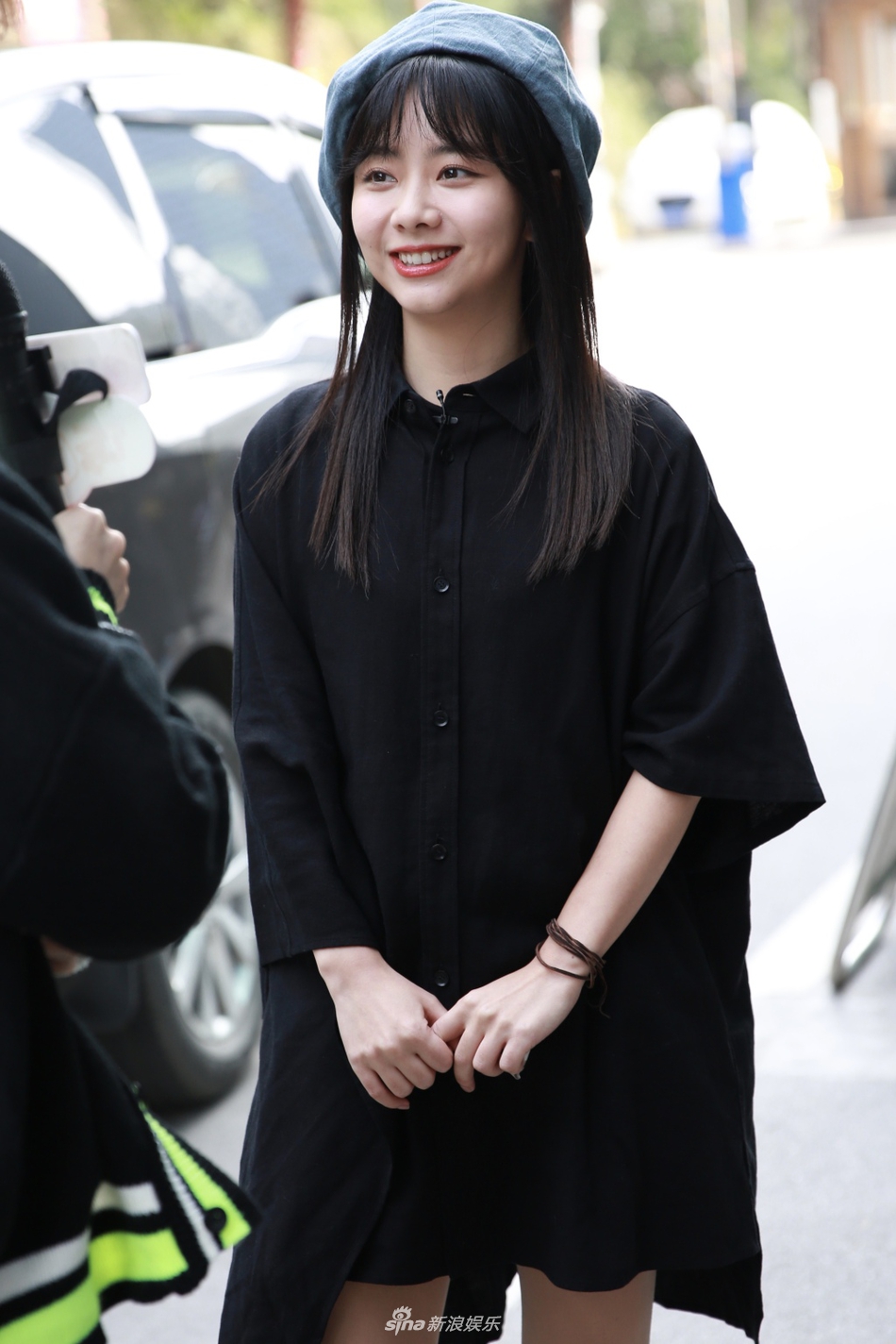 谭松韵穿黑色衬衫裙露纤细美腿 戴贝雷帽甜笑清纯可爱[6P]