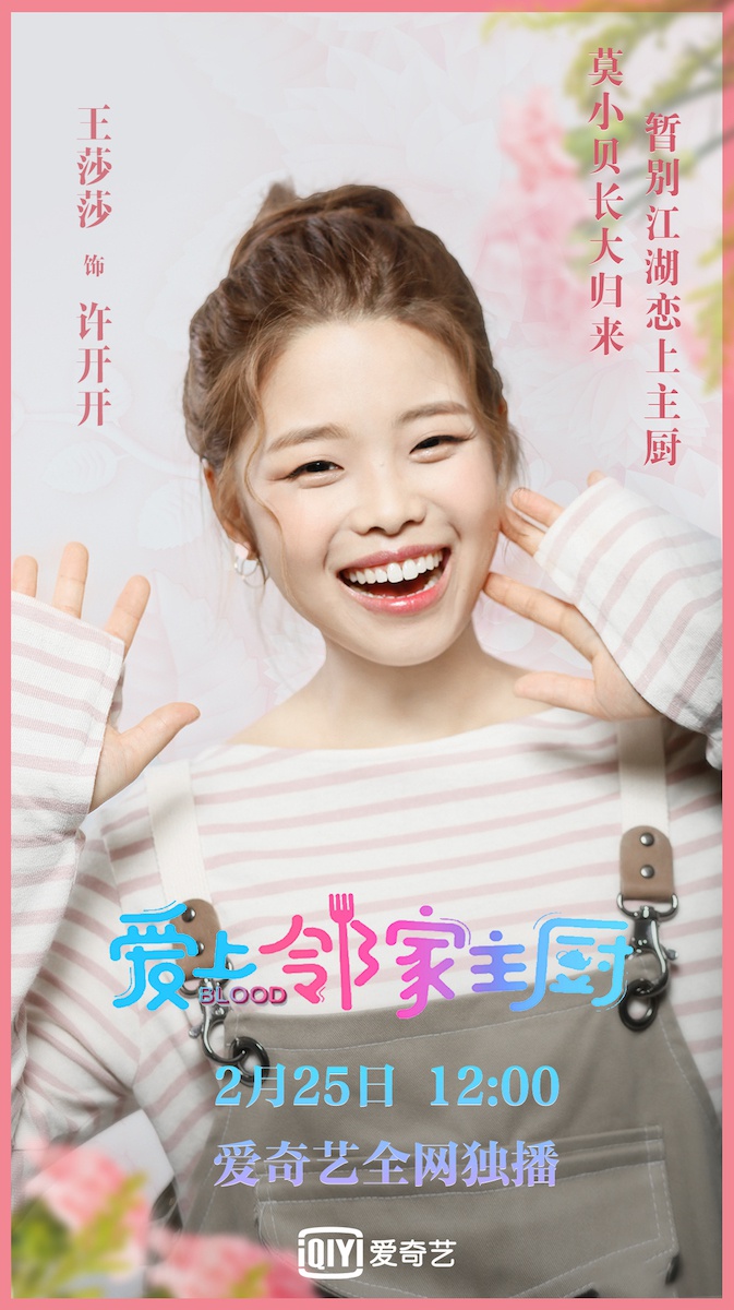 今日,由王莎莎和张耀主演的爱情轻喜剧《爱上邻家主厨》官宣定档,将于2月25日上线爱奇艺平台 独播剧场。 本剧讲述了剧中主人公因美食而结缘,为爱情和梦想追逐自我的故事。王莎莎以《武林外传》中“莫小贝”一角被大众所熟知,这也是她从上海戏剧学院毕业后回归荧屏的首部作品。她饰演活泼可爱的女一号许开开,搭档在《人不彪悍妄少年》、《少年的你》中有精彩表现的人气演员张耀,带来一个欢乐的美食情感励志故事。 从“莫小贝”到“许小厨”王莎莎“回归”荧屏鬼马依旧 王莎莎因参演古装国民喜剧《武林外传》,饰幽默搞怪的莫小贝而被广大观众熟知。如今,吃货莫小贝成为从新东方厨师学校学成归来的“许小厨”许开开,她为了找到厨艺秘方保护家里开的餐厅,不惜混进隔壁的网红餐厅Blood的后厨,不期却窥到了Blood的秘密。 往日我们熟悉的“莫小贝”,如今已出落成一个亭亭玉立的少女,这次更是以全新的形象再次出现在观众面前。首次出演爱情轻喜剧,王莎莎依然保持了自己的鬼马特色,她这样的演员很难得,既能拉近与观众的距离又有活泼与可爱的展现。在引出了一系列啼笑皆非的故事后,许开开也逐渐从一个厨艺不精的小糊涂成长为有智慧、有担当的鬼马厨师,同时也收获了一段虽有波折但结局美好的爱情。 学业演戏两不误戏里戏外都是励志女孩 童星出道的王莎莎凭借《武林外传》、《小兵张嘎》、《包青天》等作品获得了对其演技的肯定。2011年,她考入了上海戏剧学院,提升自己对于表演和戏剧认知上的的专业能力。在上戏读书的同时,王莎莎也继续在舞台上积累自己的表演经验:2014年,她凭借话剧《国家的孩子》中主角“温都苏”而获得第24届上海白玉兰戏剧表演艺术新人主角提名奖。 2018年,她以硕士学历从上海戏剧学院毕业后,受邀加盟综艺节目《声临其境》,她希望提升自己在声音上的塑造力,以“新声班”身份去学习更多声音大咖的经验。在前不久刚结束的第32届中国电影金鸡奖上,她主演的电影《旋风女队》还荣获最佳儿童片提名。 《爱上邻家主厨》是王莎莎毕业后回归荧屏的首部作品,她所饰演的女主角许开开从厨师学院学艺归来,在学习厨艺的过程中也逐渐找到了自己的人生目标,相信这样的“励志女孩”一定能打动许多为生活竭尽全力拼搏的年轻人们。