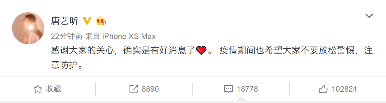 3月16日下午,唐艺昕亲自发动态,承认了怀孕的好消息。 传闻多日的唐艺昕怀孕事件终于尘埃落定,得到当事人确认,粉丝们都纷纷表示了对小生命到来的祝福和喜悦之情。 在过去几个月内,唐艺昕曾多次被媒体拍摄到相关照片,疑似怀孕,网友对此也有过多番猜测。 最早是在去年年底的时候,唐艺昕被拍到在三亚陪父母逛街的时候,穿着松垮的卫衣,手托着后背,有明显的孕肚现象。当时记者问到张若昀这个问题时,张若昀并没有给出正面回复,只说:“我们天天有好消息”。  今年3月16日一早,又有媒体拍到,张若昀和唐艺昕夫妇一起出现在机场。当时两人都穿着宽大的雨衣,张若昀先上前贴心地帮唐艺昕打开车门。 而站在身后的唐艺昕,即使有雨衣的遮挡,却还是能隐约的看到小腹有隆起,疑似怀孕实锤。 随后,有媒体致电唐艺昕和张若昀的工作人员求证,被双双以信号不好,挂断了电话。 令人出乎意料的是,当天下午,唐艺昕就发了一则简短的消息,承认怀孕喜讯,还十分贴心地提醒大家要做好疫情防护。 在被媒体多次拍到实证之后,唐艺昕才发文承认,不禁让人怀疑这次的官宣是否是在媒体的跟踪拍摄之下,无奈才被被迫承认的? 也有不少粉丝对此表示了不满,认为媒体过多地把镜头对准明星们的私生活。 此前,也有一位同样被媒体拍到疑似孕照的明星,那就是赵丽颖,不过不同的是,赵丽颖当时并没有像唐艺昕一样直接承认怀孕,反而是发文辟谣否认。 结果没过几个月生了孩子,实实在在来了一波打脸。 此次唐艺昕大方承认之后,又有不少媒体和网友,翻出旧闻讽刺赵丽颖当时遮遮掩掩,不肯告知大家真相。 其实明星对结婚、怀孕之类的私事保密或者延迟公布也是常有的事情。 不管是唐艺昕怀孕还是赵丽颖怀孕,不管他们是否准备公开或保密,都是明星们的私事,他们应当有自由决定如何处理自己的私事。 在唐艺昕发文十分钟后,张若昀也转发了这条动态,并评论:“感谢关心”。 张若昀回复冷淡,仅仅是对大家的关心表示了回复,完全没有对于即将当爸爸的喜悦之情。 更加让人怀疑,是否是在对多次被媒体偷 拍打扰感到不满。 反观同样是被媒体拍到照片之后,公开怀孕消息的唐嫣和罗晋,罗晋的转发评论则更大方平和,更多的表示了对这则喜讯的欢喜雀跃之情。 还有赵丽颖和冯绍峰,虽然早前赵丽颖一口否认了怀孕消息,但是后来冯绍峰还是站出来官宣了怀孕消息。 并且结合了当时两人合作拍摄,正在热播的《知否知否应是绿肥红瘦》的语录体系,甜度满分。 反观张若昀,早在张若昀和唐艺昕结婚之前,张若昀在面对记者提问婚讯消息时,就曾当面回怼:“你管得着吗?” 事后还为此道歉,两件事结合来看,不禁让人怀疑,张若昀对待媒体的态度是否太过强硬,情商似乎还有待提高。 当然,无论如何,唐艺昕和张若昀相恋8年,结婚2年,十年迎来的这次爱情结晶还是非常值得庆祝的。 毕竟这么多年来,张若昀的宠妻故事大家也多多少少有听说吧,在一个雨天的“车祸”结识,8年的陪伴照顾,张若昀终于娶到了她备忘录里的那个女孩子。 不知道有多少人因为她们,再度相信了娱乐圈里的爱情。 如今他们即将迎来一个新生命,两人的颜值都很高,相信未来的宝宝也一定非常可爱漂亮。 |