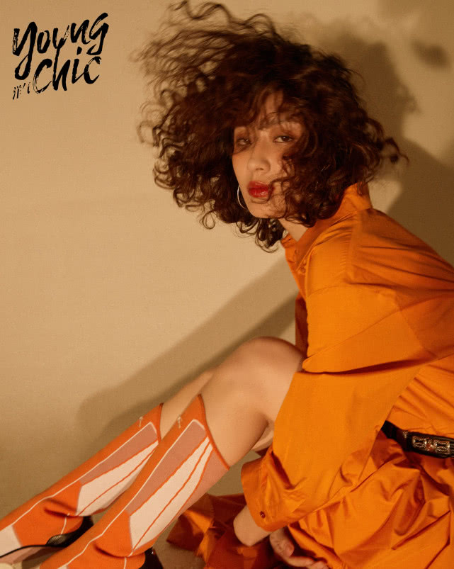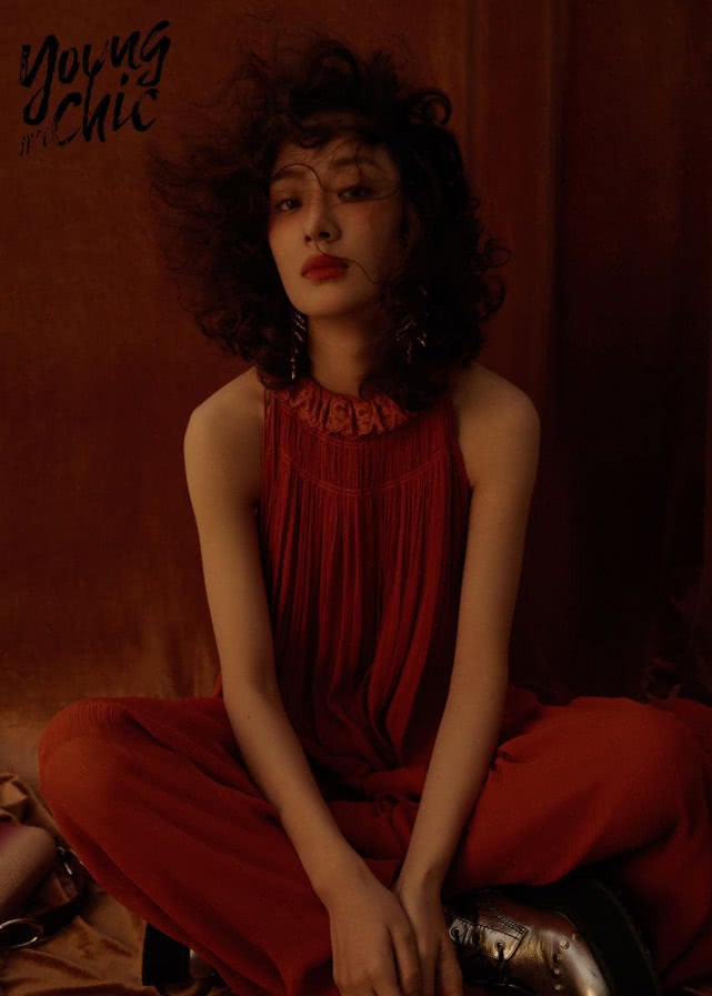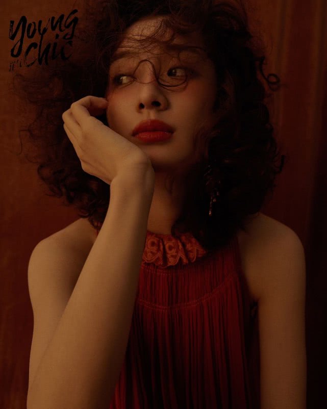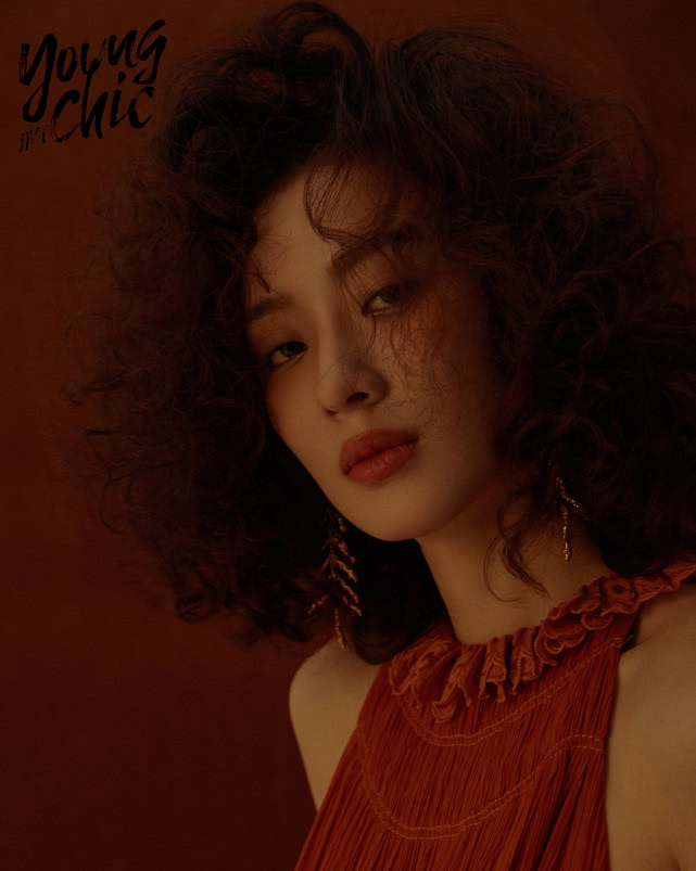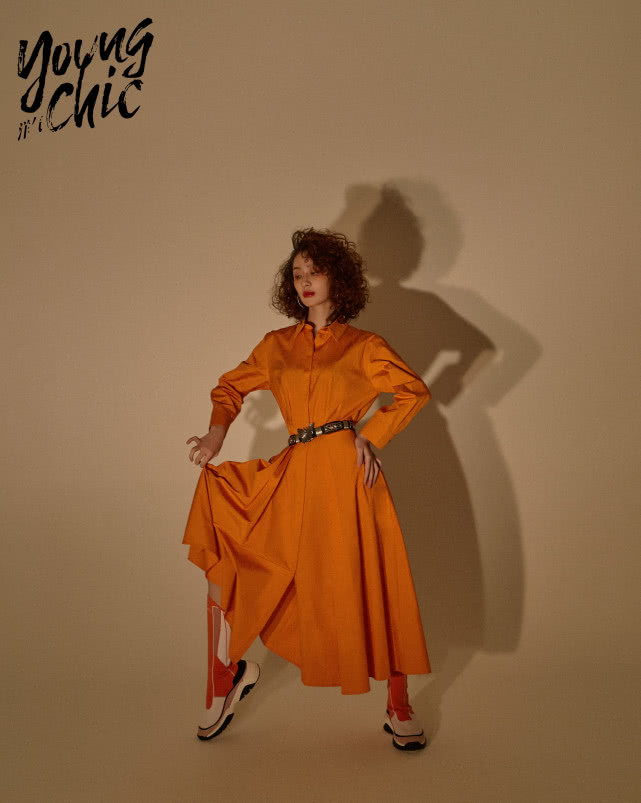 在镜头下的她自如切换百变造型,身着砖红色连衣裙的她,优雅中带着洒脱。