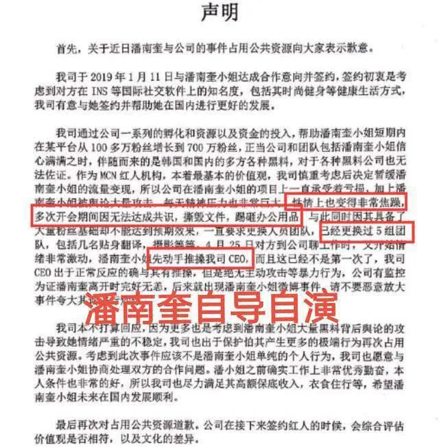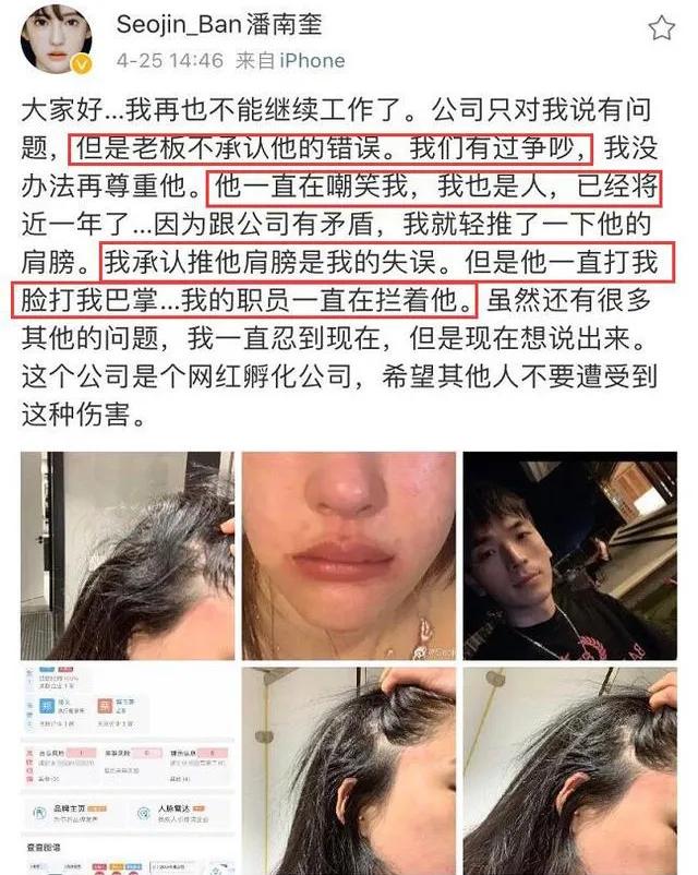 在一个造星的时代,如今的信息化时代,更容易诞生一些网红。比如,潘南奎就是这样的例子。潘南奎,出生于1989年,是韩国的网红模特。之后,来到中国发展,签约了一家中国的公司。在这家公司的包装、打扮下,潘南奎在抖音上走红了,成为了抖音上粉丝上千万的网红。 这样的潘南奎,也算是抓住了一些发展的红利。因为,这几年的抖音,一度也是红利期。只不过如今,则有些饱和了,而在潘南奎成名的时间内,至少算是红利期内的事情。如此一来,潘南奎的走红,便也不意外了。 对潘南奎来说,她的走红,跟她的整容,是有很大关系的。根据网络上的爆料,为了整容,潘南奎用了十年的时间,耗资了10亿韩元,最终变成了如今的模样。对潘南奎来说,其如今的走红,也是因为她被人赞为翻版的Angelababy。也就是说,明星脸对他的走红来说,肯定是有帮助的。这一点,没有悬念。 最近,对潘南奎来说,则是一个很大的瓜诞生了。什么意思呢?就是她发文称,自己被老板殴打了,并晒出多张脸部受伤的照片。而且,潘南奎也表示,“不能再继续工作,公司老板不承认他的错误。男方也一直嘲笑她,时间有一年之久。”这样的事情一出,许多人便也开始讨论了。 那就是,孰是孰非呢?对此,没有人能给出答案。而从潘南奎晒出的照片来看,他们的老板,似乎还是很年轻的。此外,至于自己被打的原因,她也表示,是自己轻推了一下老板的肩膀,然后,老板就一直打她的脸。 这样的事情出来之后,很多人一开始,还是站在她这边的。但是,她秒删了这样的微博。所以,许多人也在表示,为什么?是心虚了吗?还是怎么了?不得不说,从她晒的照片来看,她的形象,的确与之前不一样,而且,也的确红肿了,且部位很多。 但是,这样的事情出来之后,先是公司的员工表示,出门时的她,还是好好的,但她却发出这样的动态,让人感觉很奇怪。此外,公司员工还透露,现场是有监控的,全程,都是被录下来的。 与此同时,公司方面,也发布了自己的声明,那就是,CEO并没有殴打她,人的确发生过推搡,但没有打脸。至于网络上发布的照片,公司则推测,“可能是潘南奎恶意炒作自己抹黑公司”。与此同时,这家公司也表示,今后签约外国艺人的时候,可能要先考虑文化差异了。这样一来,事情也变得更加复杂了。 |