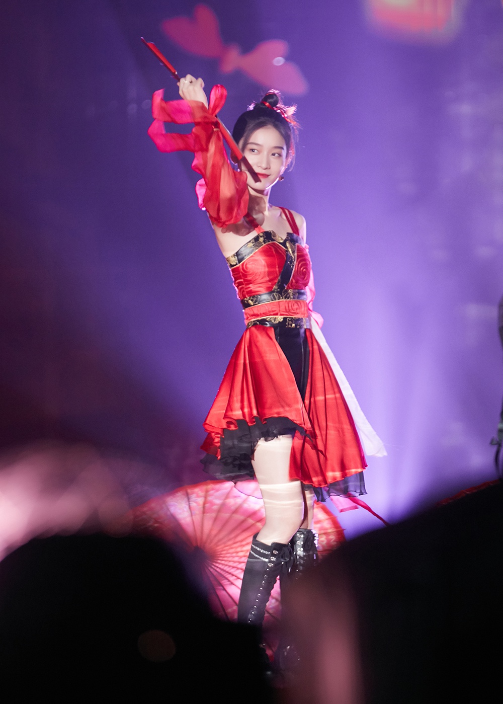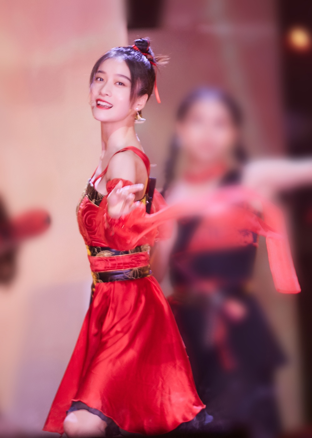 6月17日晚,张雪迎受邀参加湖南卫视《618超拼夜》,带来古风经典歌曲《笑红尘》。当晚张雪迎以一身红黑裙裤装搭配侠女丸子头惊艳亮相舞台,眉眼如画,手持折扇飒中带甜。初次尝试唱跳舞台的张雪迎身轻如燕,舞姿英气大方,令人惊喜。