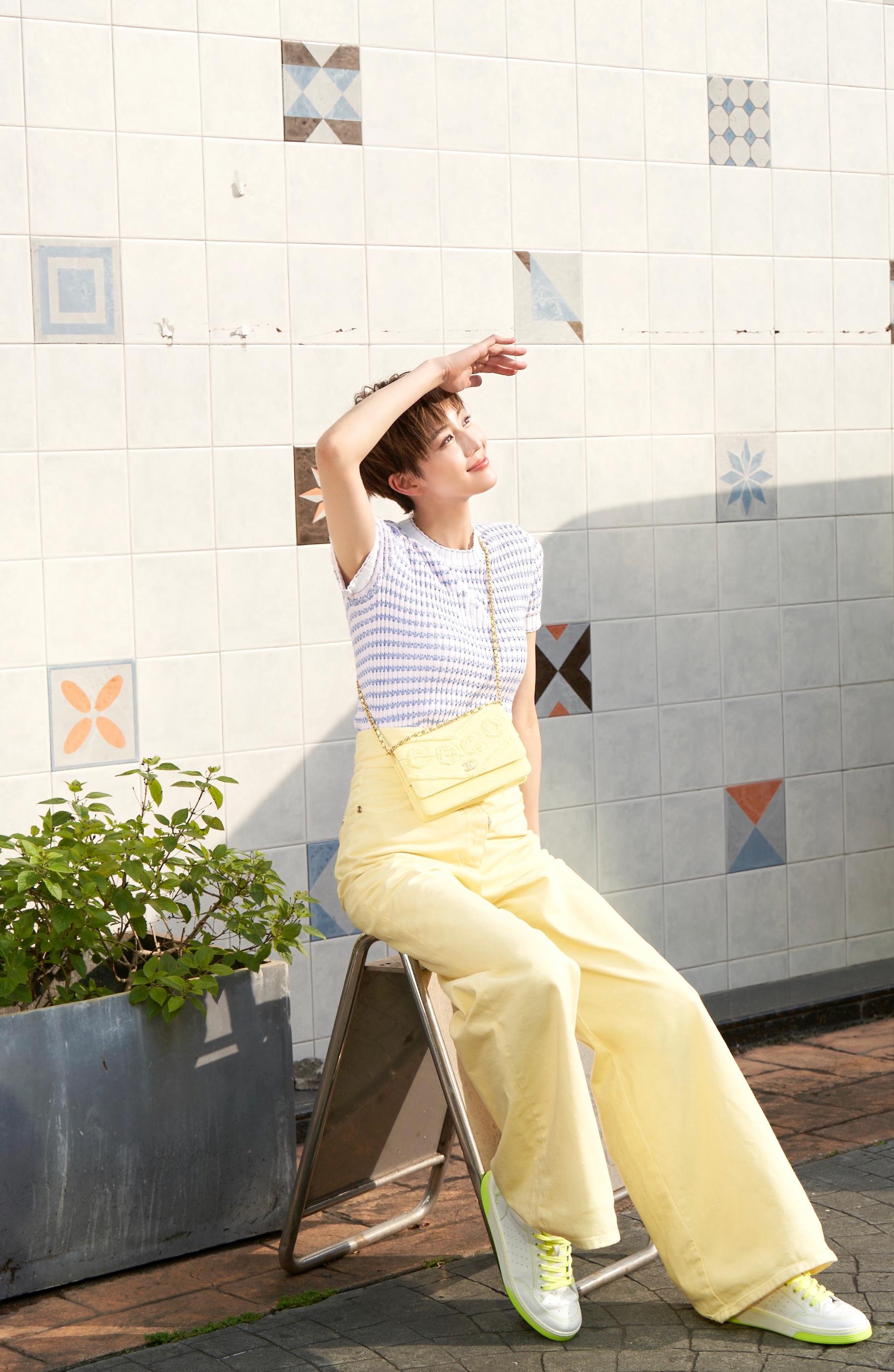 近日,张钧甯曝光一组最新街拍,条纹针织短袖搭配黄色裤腿裤,或仰望天空欣赏风景,或依坐路边休息片刻。夏日清新穿搭风格,搭配干净利落短发展现别样魅力。