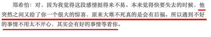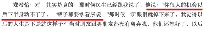 出道21年的郑希怡,因为《乘风破浪的姐姐》这档节目,突然红了,顺带还狠狠圈了一波粉。  不少网友为她的风姿倾倒,觉得她又A又飒,纷纷在社交平台上高喊“我好爱她”。 9年前,还在为“掉裤事件”失声痛哭的郑希怡,应该没有想到,她在未来的2020年,会因为一档节目,晋升为大众女神。  明星的星运大致可分为两类,一类是星运亨通的。 这类明星出道走红之路相当顺利,有的一出道就被大导演看中,成为大导演的“御用女郎”,有的凭借一首歌就红透了全网。 另一类则时运稍显不济,命途比较多舛,个中典型代表就是郑希怡。  她18岁时参加新秀歌唱大赛,因被英皇老板杨受成看中,在决赛当晚决定退选,加入英皇。 决赛时冒着风险退赛,郑希怡本也是抱着大红大紫的心态去英皇的。 但是,她出道时港圈已经开始式微。 加之之后也没有特别出圈的歌和出彩的角色,所以一直也未能得偿所愿,论名气,远远比不上同公司的容祖儿和阿娇。 不认识她的内地网友,没准还经常将她跟郑少秋女儿郑欣宜搞混。  保安我若不是去查了点资料,也记不起她还在《小鱼儿与花无缺》里面演过江玉燕的妹妹江玉凤。  当明星,不怕没缺点,就怕没有特点。 因为没有区别于其他明星的特点,就没有一个基本的辨识度,自然也不容易被观众记住。 这也是郑希怡一直没有红的一个重要原因。  不过,没有因为作品受到广泛关注的郑希怡,也上过两次头版头条。 虽然这两次头版头条,郑希怡大概是希望自己从未上过的。  郑希怡第一次上头条是在2006年,因为“掉裤事件”。 当时她跟钱嘉乐黄德斌一起,为TVB举办的一个筹集善款的节目《欢乐满东华》,表演“空中美人”。 但是发生了意外...... 按照节目动作规定,黄德斌在空中要将郑希怡抛送到钱嘉乐手中,但钱嘉乐失手,只拽住郑希怡的裤脚。 而由于郑希怡的裤子太松,最终拉脱裤子......  从空中下来后,郑希怡强忍泪水说自己撑得住。 但糟心的是,当时的节目主持人曾志伟在一旁幸灾乐祸,笑她“任荡”,还调侃说“有没有慢镜头可以回放”。   事后,她“掉裤”的画面,又被传到了某知名视频平台,并成为了该视频平台,当天全球点击率最高的短片。 港媒大肆报道她沦为了全球笑柄。 不堪压力的郑希怡,因此失声痛哭。  不过,郑希怡挺会调节自己的情绪的,两年后,她已经能笑对还在奚落她的曾志伟了。 曾志伟这个人出了名的嘴贱,一张嘴得罪过不少人。  2008年,距离郑希怡“脱裤事件”已经过去两年,大众已经把这事儿忘得差不多了。 但曾志伟在跟郑希怡钱嘉乐参加同一档节目时,又提了这事儿,跟郑希怡说“小心点!小心掉东西出来!” 钱嘉乐亦插嘴说:“是啊!掉一滴汗出来”,曾志伟再接话:“小心有东西露出来!” 不过,几次三番被奚落,郑希怡也没有动怒,反而笑面迎人,越玩越放得开。 玩“爆球”环节时,曾志伟再问她:“做节目不小心走光有什么办法?” 她云淡风轻地回了一句:“没得救啊!穿潜水衣吧!”  一句话怼得曾志伟无话可回,不得不说,姐姐真的飒! 郑希怡第二次登上港媒的头条,是在2012年,当时她赴泰为好友应采儿庆生,意外失足跌落山坡,被树枝插穿肺。  一般人在鬼门关走了一遭,心态可能要崩一崩。 但我们郑姐,戴著颈箍,打着点滴,对着镜头比了个耶,简直比张雨绮还虎啊。  不过,祸兮福所倚,郑希仪经历坠崖这一遭,看到了她男友梁学储的真心,在一年后跟他结婚了。 梁学储出身平平,在跟郑希怡结婚前,只是Twins的化妆师。  保安我看网上很多人对郑希怡嫁了个化妆师感到吃惊。 因为在大众的印象里,香港女明星好像天生就是要嫁豪门的,再不济也会嫁个能赚钱的同行。 但,郑希怡之所以是郑希怡,就在于她是个不走寻常路的女明星。 梁学储不仅事业普普通通,而且还离过婚。 他俩2006年刚开始传绯闻时,港媒就报道过梁学储是个单亲爸爸。   2013年,他俩登记结婚的时候,又有记者拍到梁学储在结婚申请书上填“离婚人士”。 事后,记者拿着这事儿去问新婚的郑希怡,郑希怡大方承认:“他很年轻的时候结过婚,当时只有21、22岁,我们拍拖前一早已经知道。” 郑希怡这般护着梁学储,也是因为梁学储值得。  郑希怡当时坠崖还挺严重的,医生甚至跟她说,她有很大的机会,以后下半身动不了了,“一辈子都要拿着尿袋”。  虽然人前比耶,人后郑希怡还是有在焦虑她往后的人生是不是就这样了。 这个时候,梁学储给了她信心。  都说久病床前无孝子,更别说毫无亲缘关系的“男朋友”了。 但在郑希怡可能瘫痪的情况下,梁学储向她求婚了。 他拿了一颗很原始、什么都没有镶的钻石,在郑希怡病床前跟她说“不如我们结婚吧”。 很朴素的钻石,很朴素的求婚词,但郑希怡听完哭得稀里哗啦的。  她很感动,因为她也以为梁学储会离她而去,更没想过他在这个时候会跟她求婚:“本来觉得快要失去的时候,他突然之间又给了你一个很大的惊喜,原来大难不死真的是会有后福”。   诚如郑希怡所言,大难不死必有后福。 不仅爱情得意,8年后,她的事业也迎来了丰收。 姑娘们爱她,因为觉得她又美又飒。  不过,郑希怡为了这种飒和美,也努力了蛮久的。 郑希怡年轻时有点婴儿肥👇  看起来...有点可爱,也有点憨。  她那时候爱吃。 虽然她的经纪人霍汶希不准她吃白米饭,但她躲桌子底下也要吃烧卖。     年纪上来之后,她在节制自己的食欲同时,也