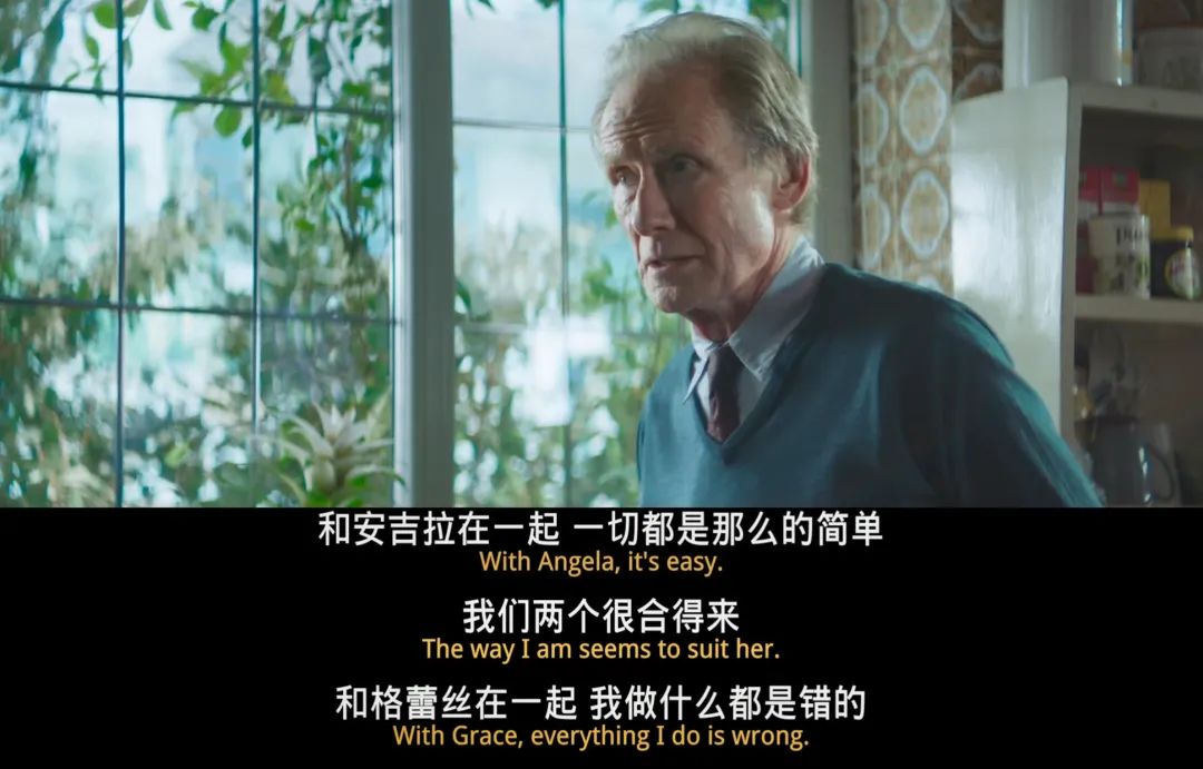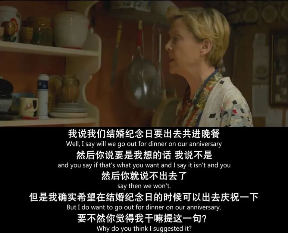 没认出来吧 看这二位全程飙戏,简直是种享受。 眉眼皱纹都是戏。 格蕾丝(安妮特·贝宁 饰)是一名诗选编辑。 艾德华(比尔·奈伊 饰)是一名历史老师,业余时间编辑维基百科词条。 他们结婚快29年了。 电影一开始,就极力展现两人如今生活习惯上的差异。 格蕾丝穿着印满花纹的鲜艳衣服,放松随意。 而艾德华穿着单色毛衣和衬衫西装,拘谨严肃。 客厅摆放着两人的书桌,格蕾丝的凌乱,艾德华的整齐。 他们背对着对方,各自看着窗外不同的风景。 但比起这些,更大的差异还在于性格。 格蕾丝强势,咄咄逼人,以自我为中心。 成天念叨艾德华对生活缺乏热情。 艾德华低调,沉默寡言,喜欢独处。 也有点受不了格蕾丝的喋喋不休。 眼看结婚纪念日将近,两人又发生了争执。 格蕾丝想要在纪念日那天和艾德华共进晚餐。 却得到一个不温不火的回答:如果你想的话,我们就去。 她不满这种冷漠的态度,便改口说不去了。 得到的依然是顺从的回答:那就不去了。 这彻底激怒了她。 这段看似无理取闹的争执,表明两个人的关系已经失去平衡。 格蕾丝是这段关系的主导者,强势的一方。 她在开口提问前,其实已经预设了想要听到的答案。 一旦对方说的不是自己想听的,她就会立刻打断,甚至攻击对方。 对于纪念日,她满心期待的热烈回应并没有到来。 艾德华则是这段关系中弱势的一方。 他缺乏激情,又不善言辞,自以为只要顺从妻子就能顺利过关。 但没有想到,正是这种冷淡,让妻子无法忍受。 她自以为把艾德华从乏味单调的生活中拯救了出来。 殊不知,他本来就是内向型人格,不善表达,需要个人空间。 其实所谓拯救,不过是为了让艾德华和自己保持步调一致。 却从未问过他,这是否真的是他想要的生活。 山雨欲来风满楼。 长期不对等的相处状态,也在激化矛盾。 在接下来的对话中达到了顶点。 格蕾丝觉得两人缺少沟通,因为艾德华总是沉默。 于是她硬逼着他说话: 「你说你不知道什么是爱,但你能感受到。但如果你不说,我怎么能感受到呢?我怎么知道你爱我呢?」 而他没有照做。 毕竟,爱不是说出来的。没有真情实感支撑的「我爱你」,终究是苍白无力。 被步步紧逼的艾德华,终于爆发了。 他罕见地吼了格蕾丝。 随之而来的,是一记脆生的耳光—— 这记耳光,就是压死骆驼的最后一根稻草。 他终于决定,奔向另一个温柔乡。 原来早在一年前,艾德华就爱上了一位学生的母亲,安吉拉。 这确实让人意想不到。 艾德华看上去没有花花肠子,也不是刻板印象中的负心汉。 而更像是婚姻当中的失语者,身陷囹吾的无助丈夫。 可事实就是,他出轨了。 他向格蕾丝坦白,点明了两人间的痼疾。 自己给不了格蕾丝想要的。 即便如此,格蕾丝还是打心里觉得: 离婚?他没这个胆。 直到对方挑明要离开,她仍然固执高傲至最后一刻: 「不,我不允许你这么做。」 可艾德华去意已决。 刚说完就拎上行李走人了。 徒留格蕾丝愣在原地。 就像是卯足力气挥出一拳,却打在了自己身上。 他们的离婚,别说冷静期了,就连短短几分钟的缓冲期都没有。 一刀两断,干净利落。 艾德华走后,格蕾丝戾气不再。 没有了出气和发泄情绪的对象,落寞苍老了许多。 当格蕾丝还抱有幻想时,却等来了一纸离婚协议书。 在律师事务所,两人分别后首次见面。 虽说约定好的,过来签字,离婚,走人。 但她早就憋坏了,不吐不快: 「如果要我没有你生活下去,那我宁愿做一个寡妇。比起被遗弃的女人,寡妇的社会地位会高一些。」 谈话至此,此次见面的意义已荡然无存。 悲剧变闹剧,但终归要回到日常情景剧。 她终于还是决定勇敢面对事实。 她找上门去,想见一见安吉拉。 也看到艾德华过上了他想要的平淡闲适的生活。 她这才恍然大悟: 「感觉你跟我生活的这些年,就好像身处外太空。我们也有过婚姻,对吧?在另一个星球上。」 见到安吉拉后,她自然不会放过最后一次挖苦嘲讽的机会。 眼看着一场骂战在所难免。 可令人没想到的是,安吉拉只用一句话就击败了她。 堪称整部电影的最强音: 「以前有三个不开心的人,而现在,只剩下一个了。」 会心一击。 格蕾丝无话可说,默默转身离开。 她知道,自己和艾德华彻底结束了。 该去迎接新的生活了。 可以说整部电影,都在诠释这句话: 「在爱情里,不被爱的那个,才是第三者。」 听起来有悖道德,但这就是现实。 出轨的艾德华是过错方。 但却不是他毁掉的这段婚姻。 性格不合、激情不再、沟通不畅……他们之间有太多问题。 其实不是解决不了,而是他们根本不想去解决。因为那种想要一起生活的情感支撑已经不在了。 任由矛盾积压,愈演愈烈,最终崩塌。 与其勉强在废墟中强颜欢笑,还不如放手。 何时开始新生活都不算太晚。 有人说,这是一部「老年版」的《婚姻故事》。 因为离婚的导火索,都是一方为了迁就另一方,而渐渐迷失了自我。 当满足对方的期望,变成了难以企及的绝望。 一段感情便来到了分岔路口。 但不同的是—— 《婚姻故事》中的离婚,是一个纠结、煎熬的过程; 而《希望沟壑》中的离婚,只不过是说出口的那个瞬间。