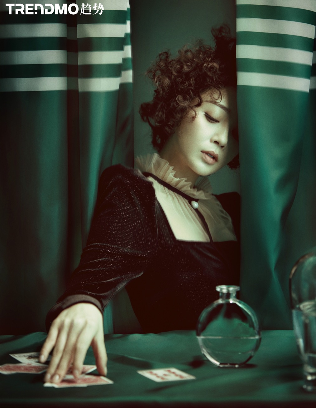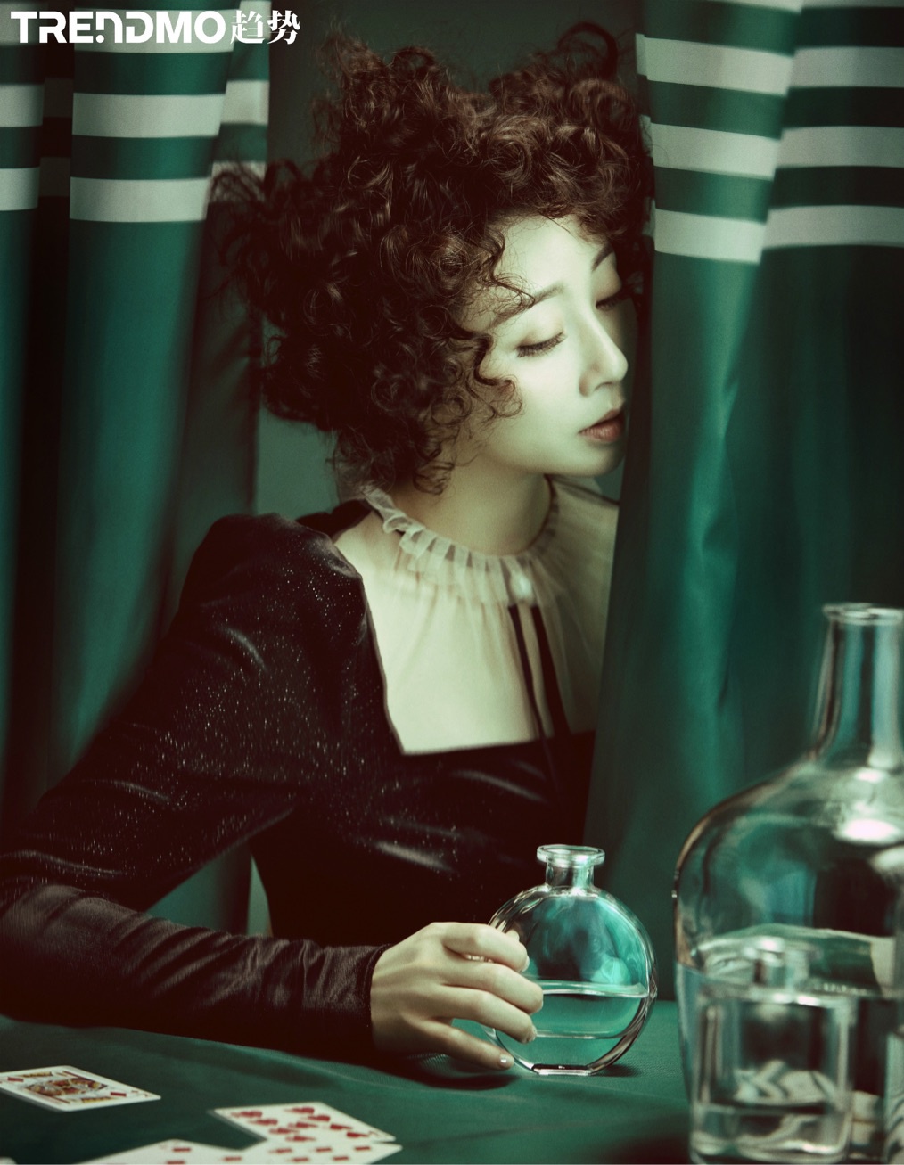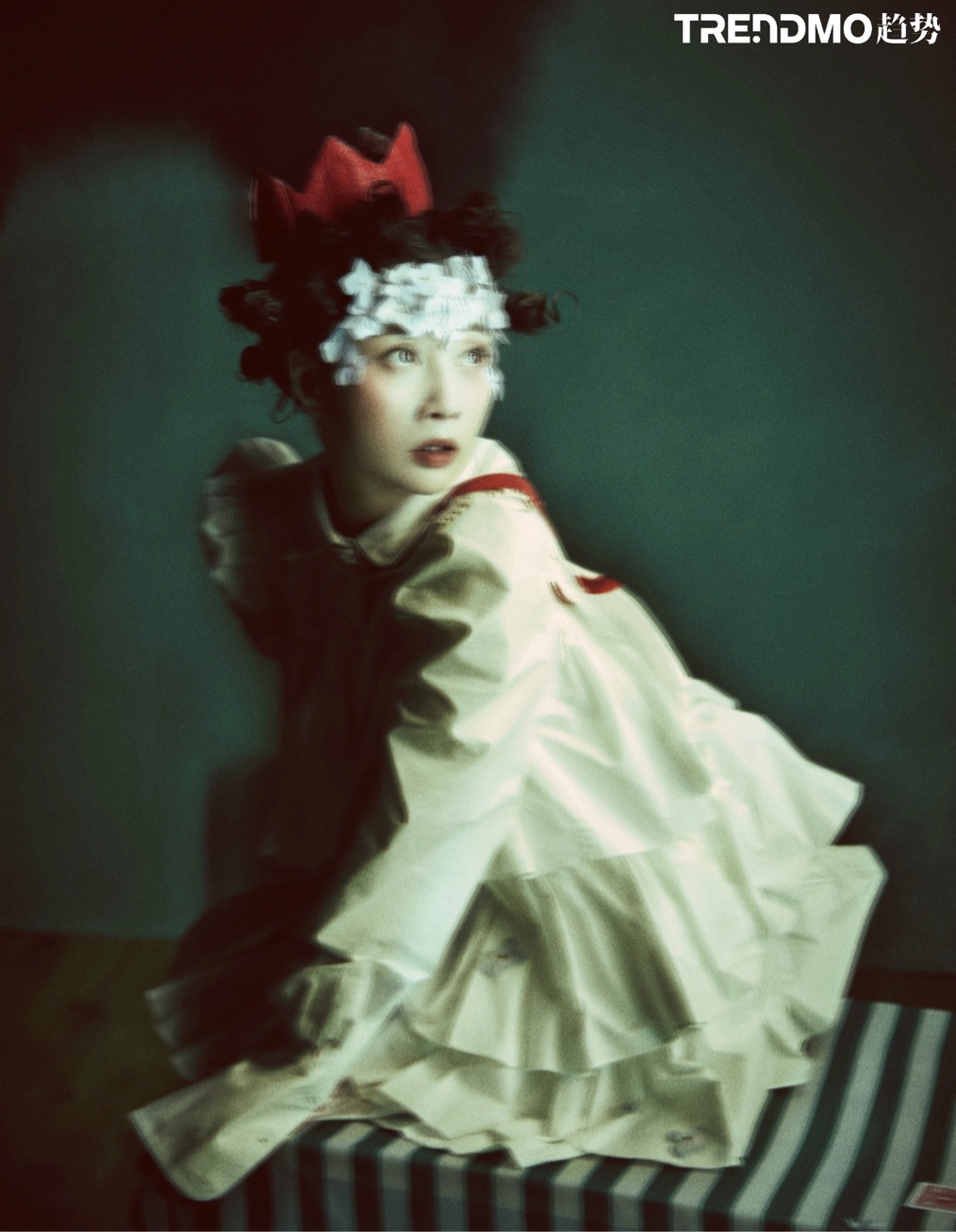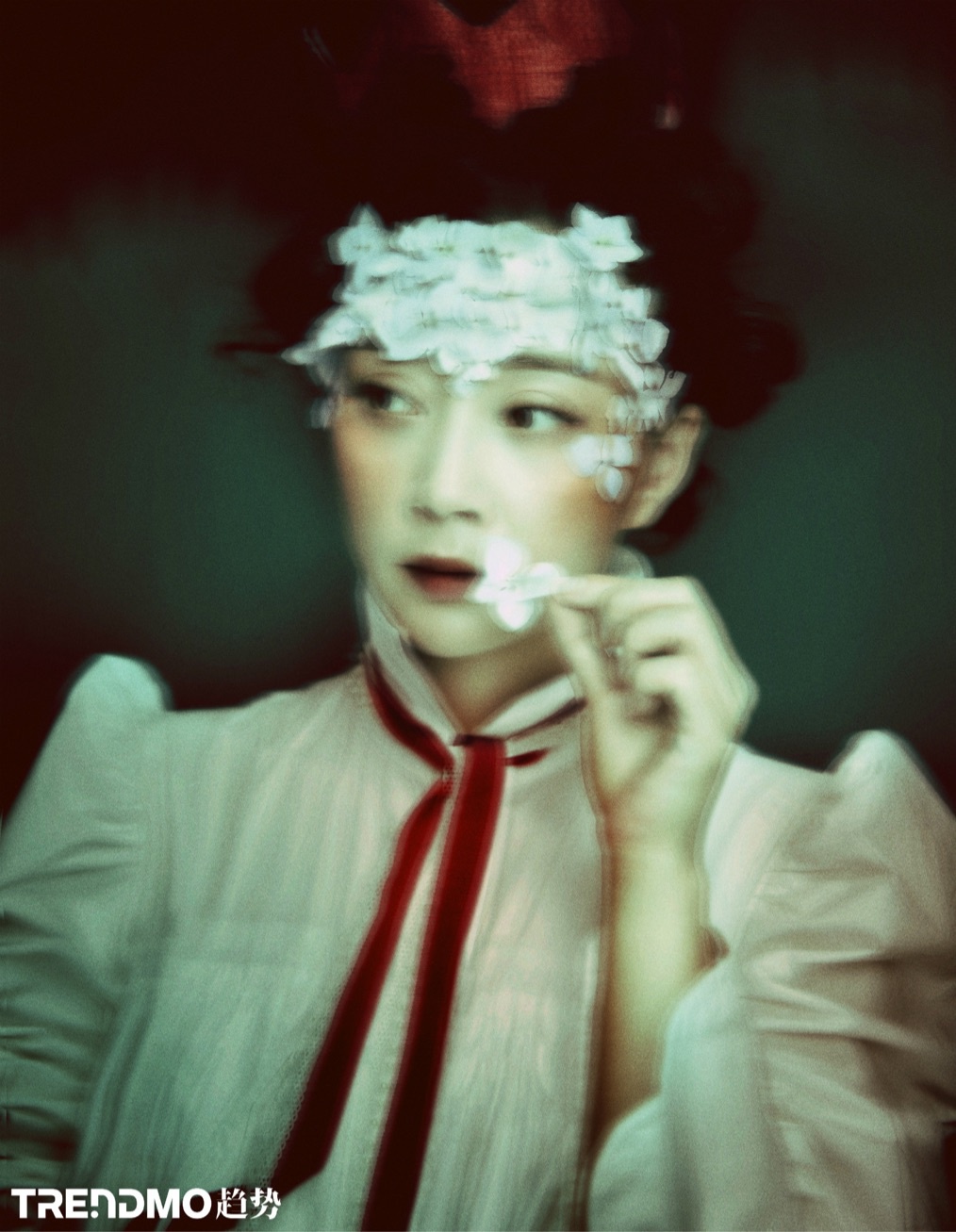 透过镜头,眼眸慵散却充满故事感,恍惚间,时空流转,彷佛穿梭于童话次元里的魔女。