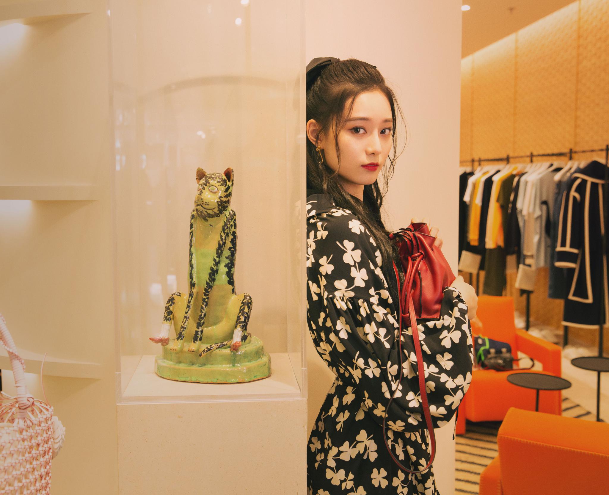 徐艺洋受邀出席品牌活动 幸运草复古连衣裙青春随性[6P]