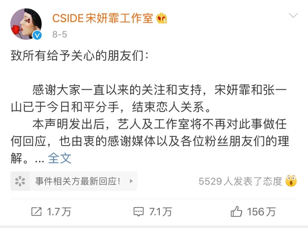 这两天编辑看着张一山的新闻就闹心。 闹的不是他今天和谁谈恋爱了,明天和谁分手了,而是明明是个有潜力的演员,偏偏成了靠绯闻上热搜的明星了。 当然,这也不能说明什么,毕竟张一山的演技还是在那摆着的。 更何况,92年出生的张一山,今年也28岁了。谈谈恋爱,倒也无可厚非,只不过宋妍霏工作室发的一则很值得品的声明,将这个已经很久没有出现在热搜上的男孩推到了风口浪尖。 “宋妍霏和张一山已于今日和平分手,结束恋人关系。” 官宣即分手,吃瓜群众还没从什么时候张一山身边除了杨紫还多出一个女朋友的情绪里缓过来,就又掉进了一个因“今日”一词而被扣上“渣男”帽子的疑云中。 事情当然要从狗仔爆出的一个视频说起,视频里张一山和一位短发美女形影不离,而这个看上去比较乖巧的邻家女孩显然不是我们熟悉的酷girl宋妍霏。 而后,宋妍霏懒理分手传闻现身机场,还有宋妍霏助理手机屏保曝光等热搜,让被动的张一山更加被动。 但是,感情的事情谁能说得清楚呢?况且,细细想来,这应该是出道至今,张一山绯闻曝光的最多的一回吧。从《家有儿女》开始,到北电毕业正式进入娱乐圈,从张一山口中说出的女性名字最多的,也就是杨紫了。 不是流量偶像,也不是靠粉丝撑场面的爱豆,张一山最怕的应该不是感情里的那些事,而是作品要如何出圈。 相比和他同期进入北电学习的杨紫,如今已成为90后小花里的佼佼者。虽说演技还算不上炉火纯青,但也是有一些出圈率很高的作品傍身了。 但是,张一山自从《家有儿女》一炮走红后,到现在能被大家叫的上来名字的影视作品,也就是《余罪》和《春风十里》了吧。 《余罪》里,张一山的演技的确很惊艳,甚至被外界称之为”张一山的翻身之作“。从情绪的爆发,到细节的处理,张一山的每一个毛孔都好像在叫嚣演技。 只不过,说到底《余罪》还只是部网剧,话题和舆论不缺,但还是少了大荧幕或是上星卫视剧来提升格调。 而《春风十里,不如你》呢?虽说是和影后周冬雨一起飙演技吧,两个人的表现也可圈可点,可论热度和收视率还是比不过当年那部直接助杨紫跻身“流量小花”之列的《香蜜》。 而且,该剧播出后观众的关注点还是更多的放在了从大荧幕回归电视剧市场的周冬雨身上。张一山的风头,多少还是被压下去了。 所以,张一山到底差了些什么呢? 演技?他有。要不然也不会有人在豆瓣上笃定:“张一山会是90后新生代小生里最有质感的男演员。” 知名度?也有。毕竟从小就是家喻户晓的童星,他的一举一动还是会让吃瓜群众产生好奇的。就拿这次炒的热热闹闹的绯闻,便不难看出了。 难道差在了运气?也不是吧,毕竟全中国那么多孩子,怎么偏偏就张一山被选中出演了刘星,还一演就火了。 或许,问题还是出在了对自己演绎生涯的规划上吧。直白点说,就是戏路选择过窄了。从《余罪》之后,张一山的确没有再演什么能“一鸣惊人”的作品了。 《柒个我》里,大庭广众之下花式笔心,虽然场面很搞笑,也一度在热搜上掀起了全民cos张一山笔心的效果,但看来看去还是那个味。 然后最近和潘粤明联袂主演的《局中人》,倒是在卫视播出了。可结果呢?微博上没什么水花,豆瓣评分也就5.4分,而张一山的演技在潘粤明的对比下,更显得有点稚嫩,不够细腻立体了。 所以,到了现在,你还想从张一山身上看到什么? 不是他到底和谁谈恋爱,而是那能够一击即中观众兴奋点的演技。就像一直被说不会演戏的流量偶像,鹿晗在《穿越火线》里的表现,不拿老戏骨比,但起码是让人看到了质的改变的。 而这种改变,才能能激起观众兴奋点的所在。