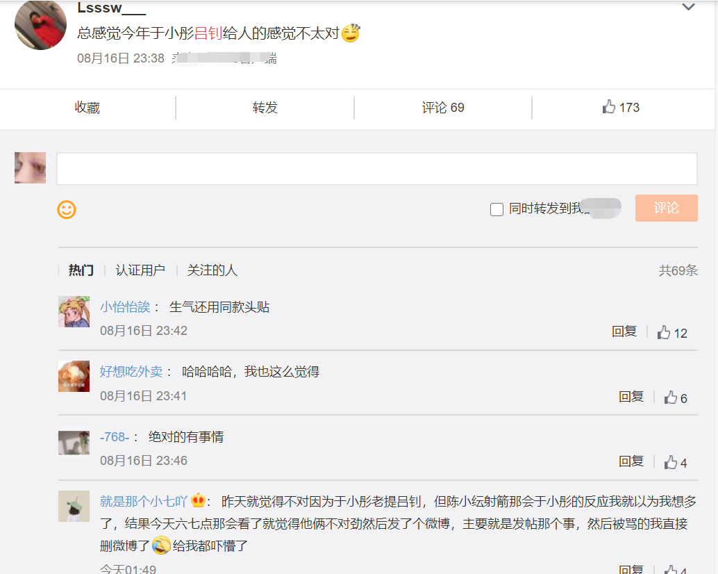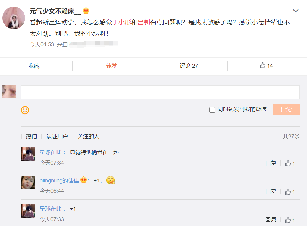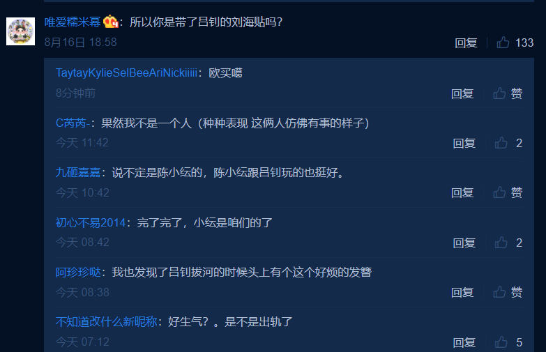 陈小纭和于小彤是圈内著名的恩爱情侣,每每出现都狂撒狗粮,让粉丝和观众朋友们纷纷化身柠檬精,对这对小情侣是既羡慕又嫉妒。陈小纭和于小彤两人虽然都不是什么顶级流量,但是靠着恋情也算成功出圈,也合体参加过综艺节目,两人的事业都在稳步上升之中。 不过前段时间两人却被传已分手,先是有眼尖网友发现在陈小纭的社交账号中已经搜索不到关于于小彤的相关动态,疑似情变。一波未平一波又起,关于两人分手的传闻甚嚣尘上,陈小纭又在网上狂cue绿色。陈小纭先是透露自配了一把绿色的弓,要知道在网络文化里,绿色代表“原谅色”,绿帽子的意思想必无人不知。 接着陈小纭表示:“我命里缺木,大师让我多穿绿色,再说了,绿色多好看。”陈小纭这番发言,令不少网友感到怀疑,这是在内涵自己被绿了吗? 之后在《超新星全运会》的采访中,陈小纭澄清了自己cue绿色是在内涵的事情,却对男友于小彤避而不谈。陈小纭表示绿色是她的应援色,被误会有点委屈。然而记者两次问到于小彤,陈小纭先是以“私人问题不适合在这里提”拒绝回答,最后直接避开男友名字说没见面。 而于小彤在采访中也对女友绝口不提,两人态度让人生疑。 还有网友发现于小彤和陈小纭在看台上也是分开坐,似乎没有什么交流,难道感情真的出了什么问题?陈小纭所发绿色也让人忍不住生疑,难道陈小纭真的被绿了吗? 于小彤之后的一次举动让粉丝们再次感觉不对劲,8月16日,于小彤在社交账号上晒出一张图片,图片中于小彤头上戴着一个写着“好烦”的发帖。 而在当天的节目中,同样是《超新星全运会》选手的吕钊,后脑勺也贴着一个写着“好烦”的发帖 而吕钊是和于小彤一起参加男女混合射箭的队友,队伍还夺得了冠军,有网友怀疑两人难道是在一起练习时产生了什么特别的情愫? 早在节目播出时,就有不少网友发帖称:“我怎么感觉吕钊和于小彤有点问题呢?是我太敏感了吗?感觉陈小纭情绪也不太对劲。”底下也是附和声一片,大家都认为于小彤与吕钊的关系有些暧昧了。 还有网友表示:“总感觉今年于小彤和吕钊给人的感觉不太对。”评论区有网友回忆道:“昨天就感觉不对,于小彤老是提吕钊。” 于小彤和吕钊之间关系不太对似乎已经不是什么秘密,不少网友都察觉出了一丝不一样的气息,还有网友直接跑到了于小彤的评论区质问道:“所以你是带了吕钊的刘海贴吗?”其他粉丝和网友纷纷表示:“好生气,是不是出轨了?”